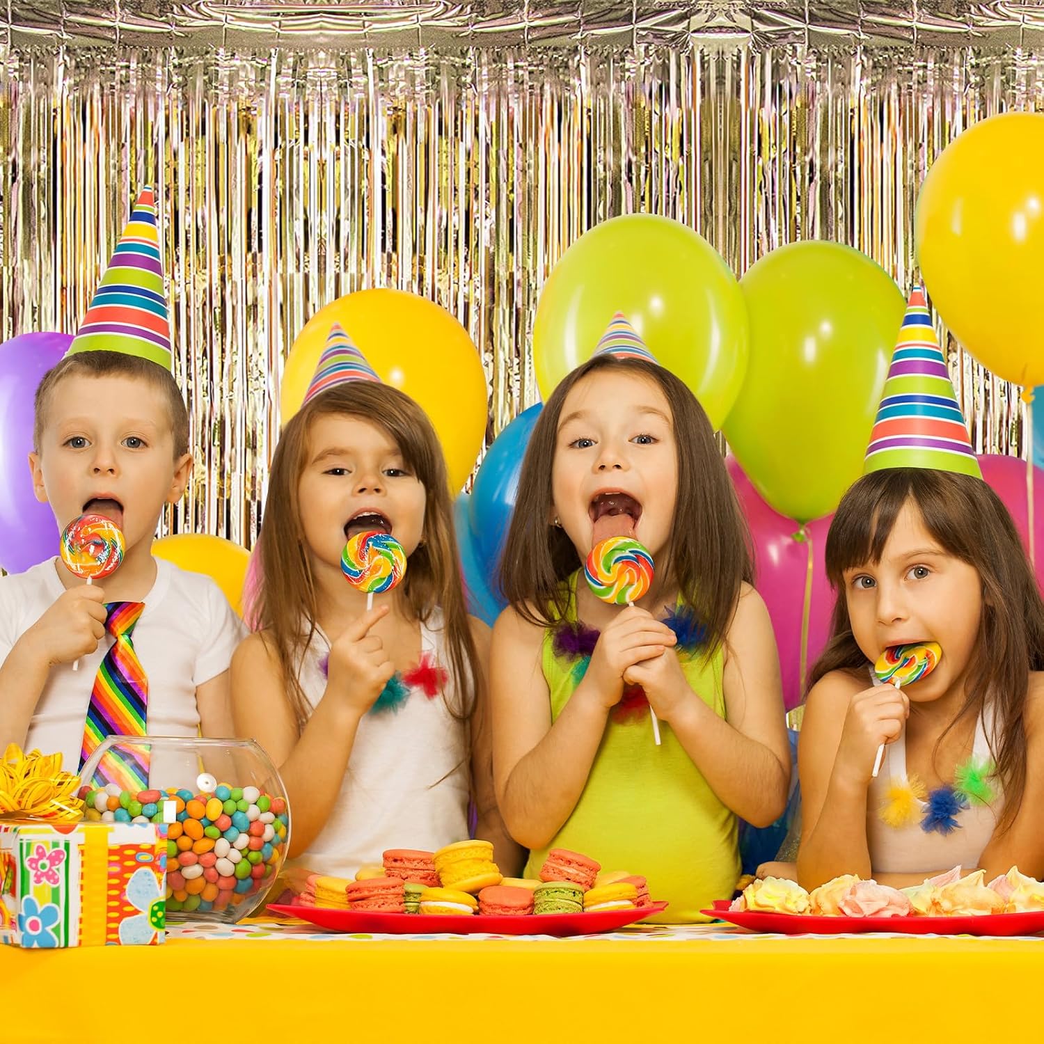 - 【Easy to Use】Tear off the double-sided adhesive tape on the back of the metallic backdrop curtain, then paste or hang it lightly for easy removal at the end of the party. Hang individual fringe curtains in different locations or splice and overlap two or more pieces of the curtain for a fuller effect.