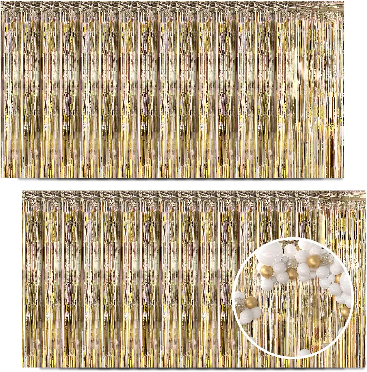 - 【Extra Large Quantity】You will receive 30 packs of champagne gold foil fringe curtains. Each pack of foil curtains size is 3.28ft in width and 8.2ft in length, abundant quantity and enough length to meet almost all your party decoration needs.