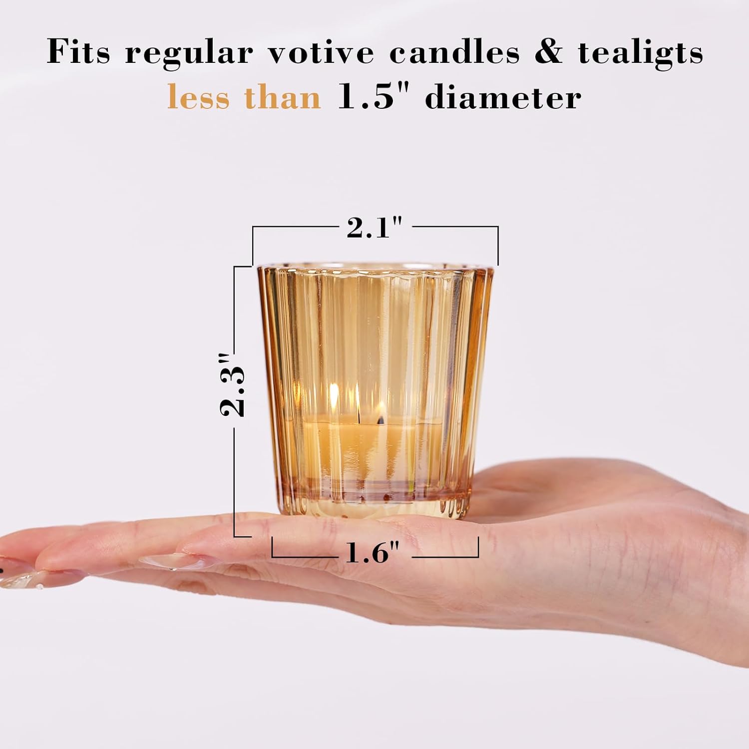 24PCS Vintage Ribbed Gold Votive Candle Holders, Glass Candle Holder for Wedding Decorations, Tealight Candle Holder for Table Centerpiece, Diwali, Home and Party Decorations