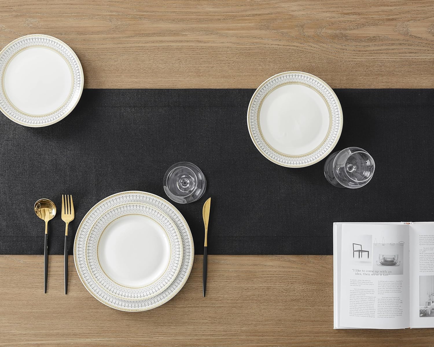 ZeeMart Linen Textured Border Table Runner, 14 x 108 Inch Black, Farmhouse Style Black Table Runners 108 Inches Long, Easy Care Everyday Polyester Table Runner
