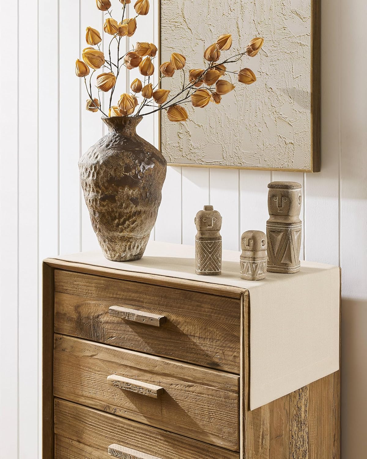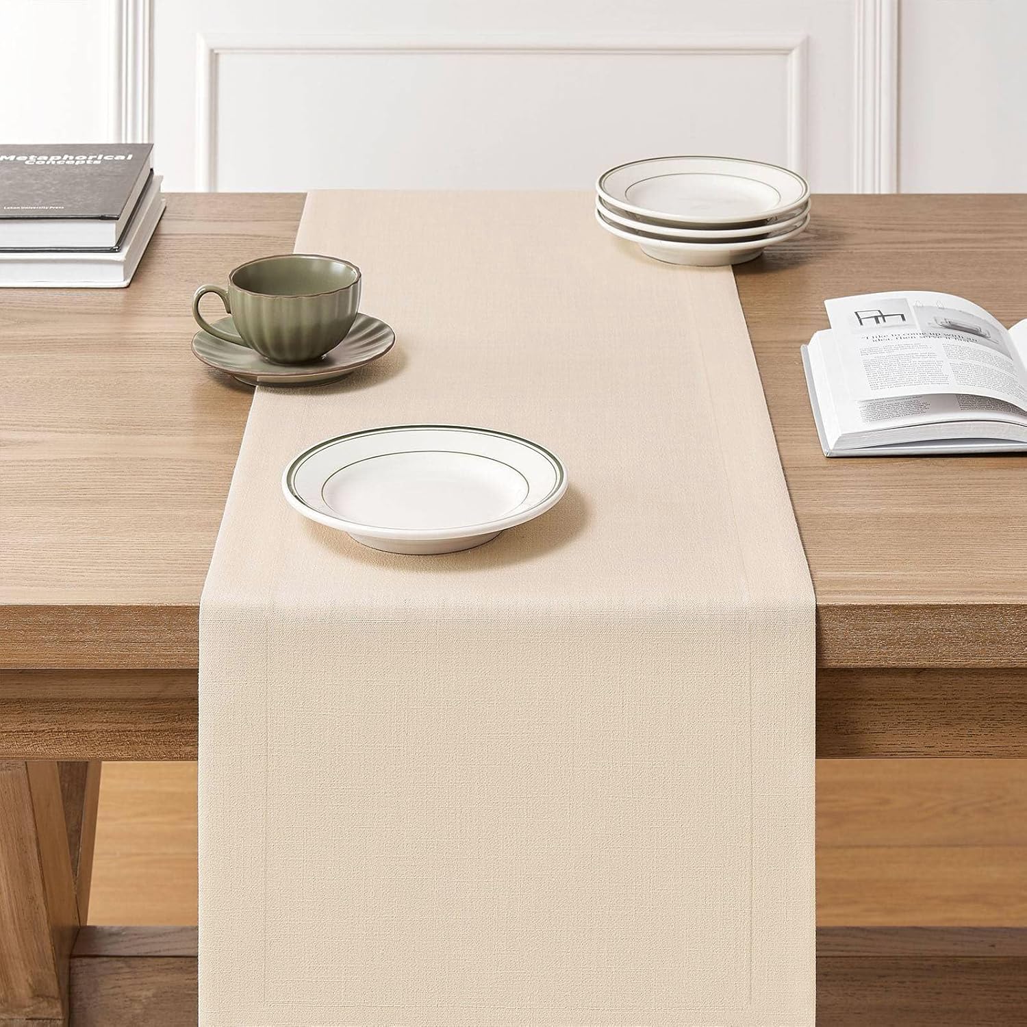 ZeeMart Linen Textured Border Table Runner, 14 x 72 Inch Cream, Farmhouse Style Cream Table Runners 72 Inches Long, Easy Care Everyday Polyester Table Runner