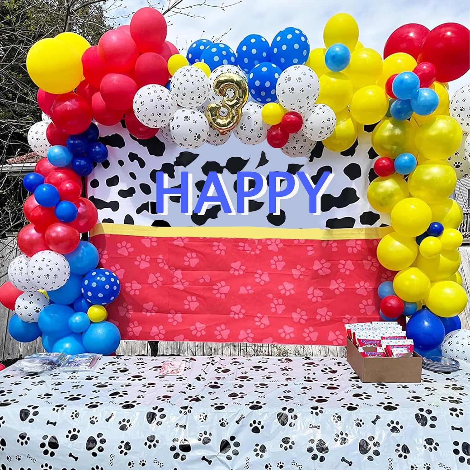 - Dog Paw Party Balloons: 30pcs 12 inch balloons set, include 5pcs Dog Printed balloons, 5pcs red latex balloons, 5pcs dark blue latex balloons, 5pcs light blue latex balloons, 5pcs yellow latex balloons, 5pcs colorful confetti latex balloons and 1pc ribbon. Perfect for a puppy theme party