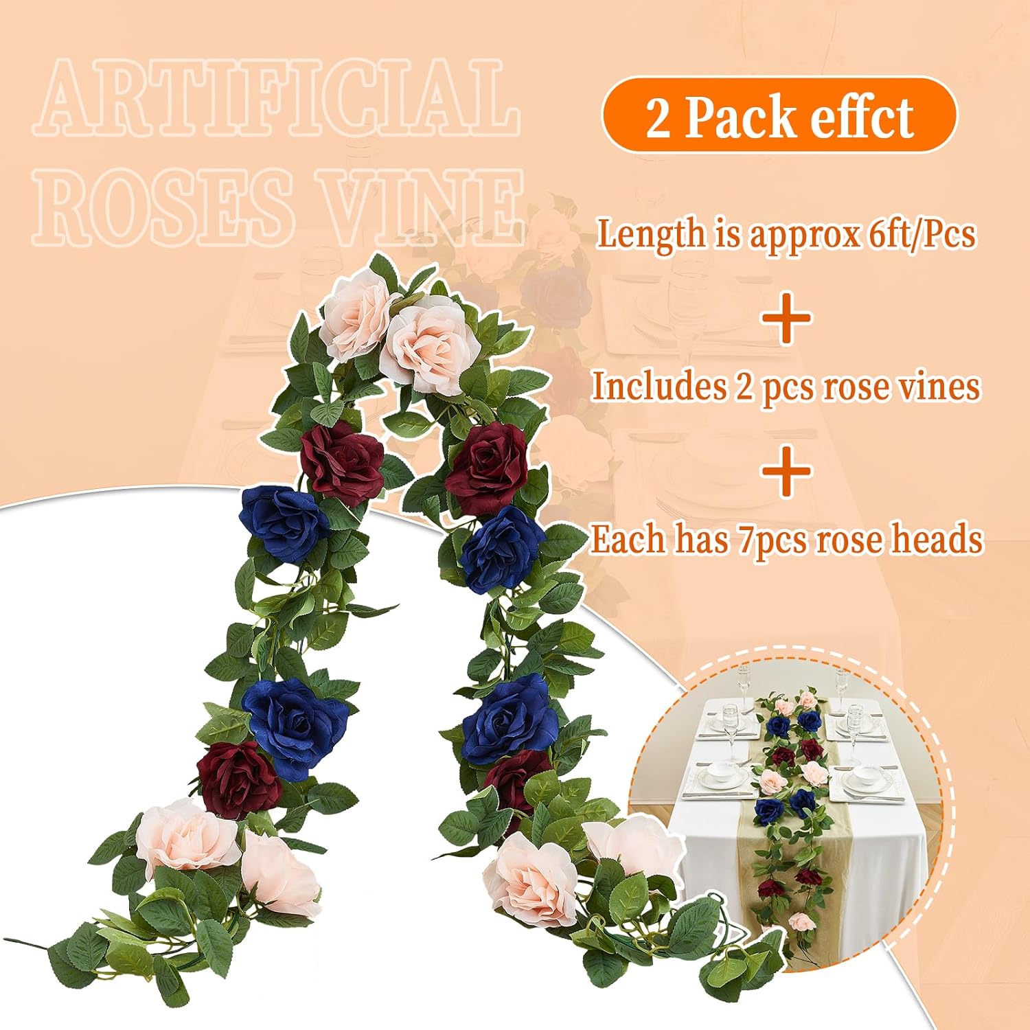 - 【LIFELIKE HANGING FLOWERS】These silk flower garlands are made of high quality silk material and plastic wrapped vines with vivid lifelike leaves; the leave is soft and comfortable to the touch, bringing the handmade fake vines to life and keeping them fresh and beautiful year after year.