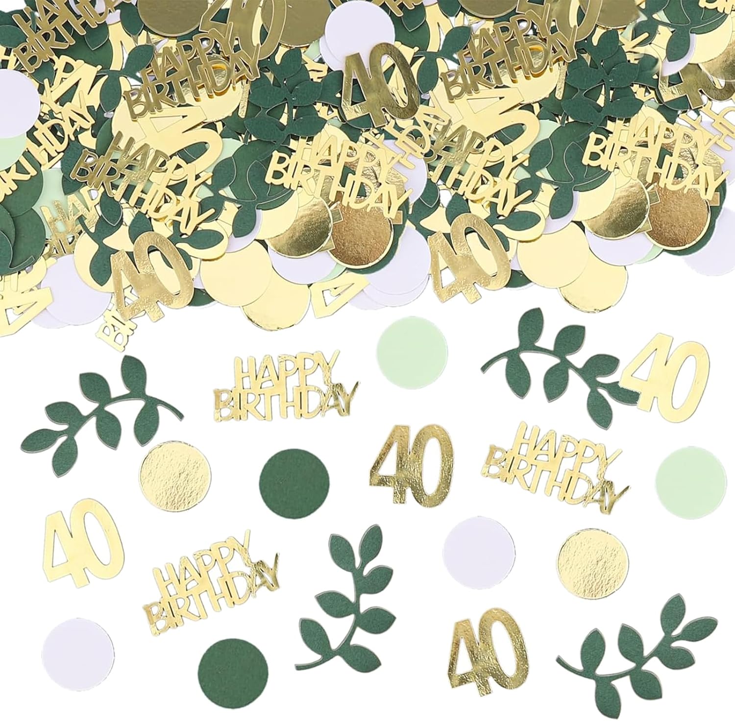 Sage Green 40th Happy Birthday Confetti, 40th Birthday Table Decorations Scatter Green Gold Foil Cake Confetti Decorations for 40 Bday Woman Man Party Decor 230 Pcs