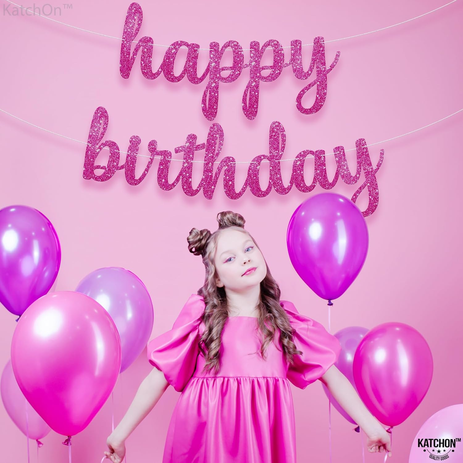 KatchOn, Glitter Pink Cursive Happy Birthday Banner - Pre-Strung, 10 Feet | Birthday Decorations for Women, Girls | Hbd Banner Backdrop For Pink Birthday Decorations, Happy Birthday Sign