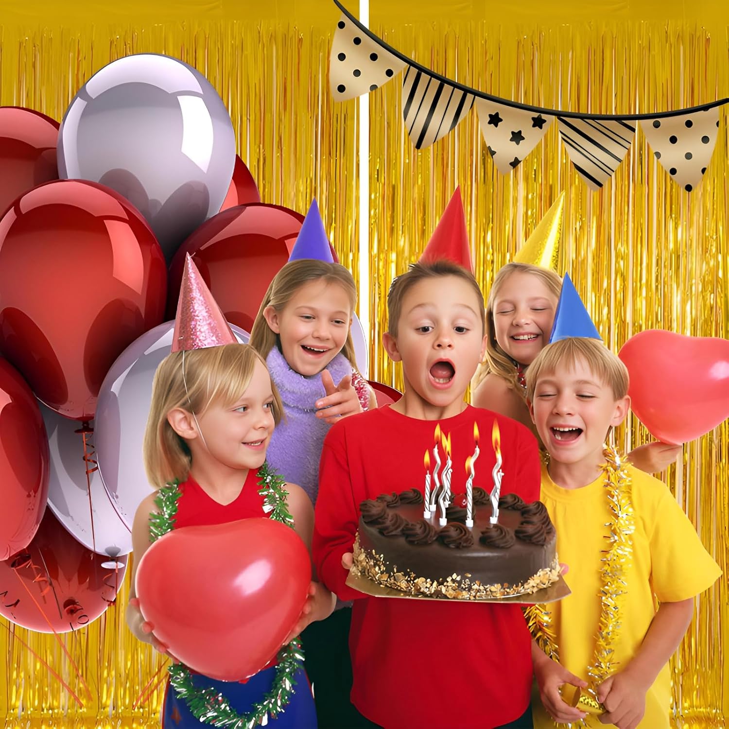 - Pair with other party decorations: Tinsel backdrop curtain can be paired with LED lights, balloons, banners, wreath, garlands, swirl streamer, tissue paper pom poms.