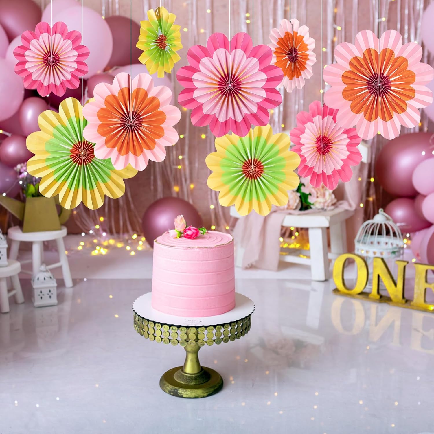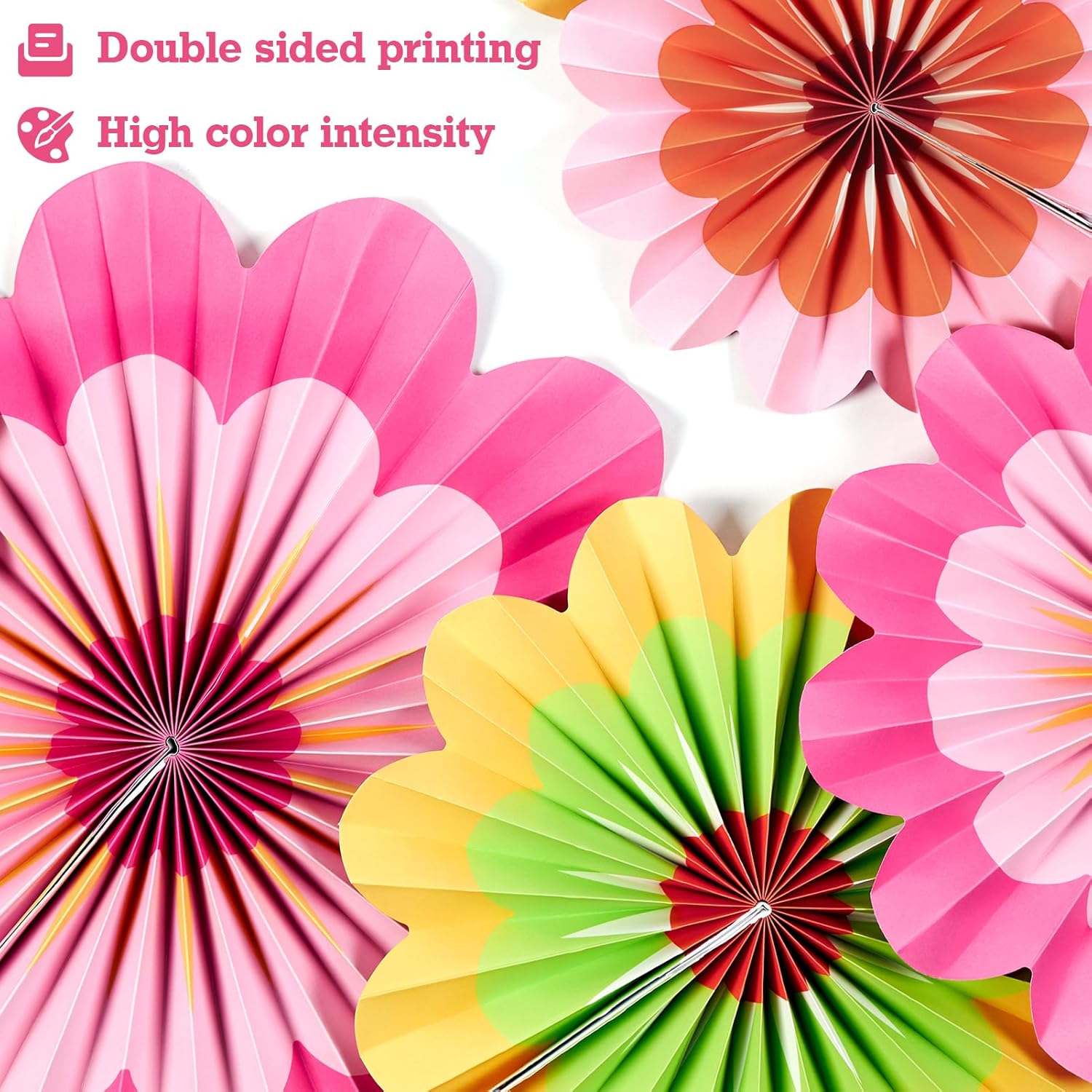 - š Paper Fans Decorations for Wall : These paper flowers decorations fits perfectly as floral wall/backdrop decorations as well hang them as aisle flower, chair, also are adorable as table centerpieces baby nursery, window displaying and also available as party backdrop and so on.