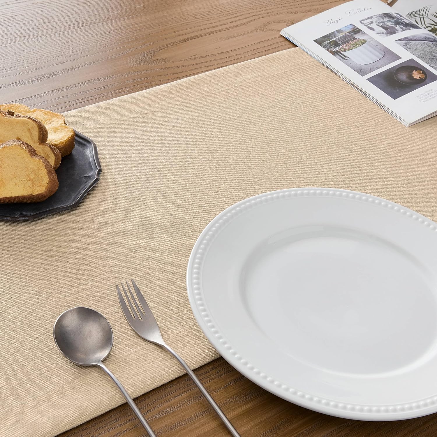 ZeeMart Linen Textured Border Table Runner, 14 x 36 Inch Oatmeal, Farmhouse Style Beige Table Runners 36 Inches Long, Easy Care Everyday Polyester Table Runner