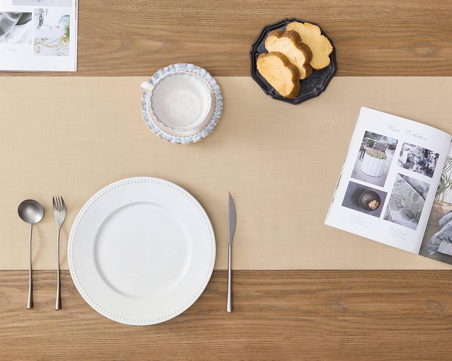 - Linen-textured border table runners, emphasize the natural rustic appearance of linen and soft cotton linen feeling. Hemmed edges & mitered corners design, can be decorated for any occasion. A variety of lengths and colors to suit all your needs.