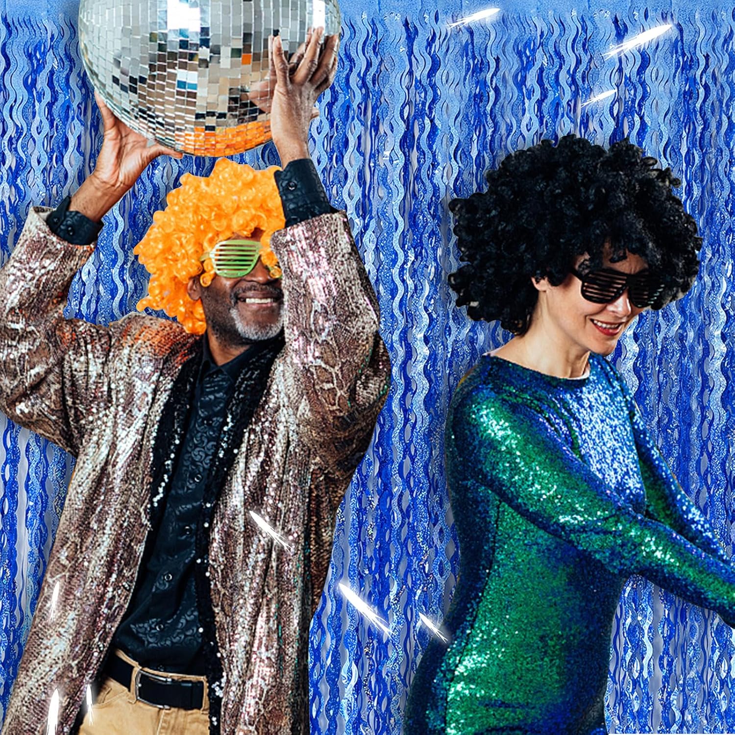 Blue Tinsel Foil Fringe Curtains Wavy Backdrop for Parties Sparkle Metallic Wavy Foil Fringe Backdrop Curtain for Party Decorations Photo Booth Props Birthday Graduation Wedding