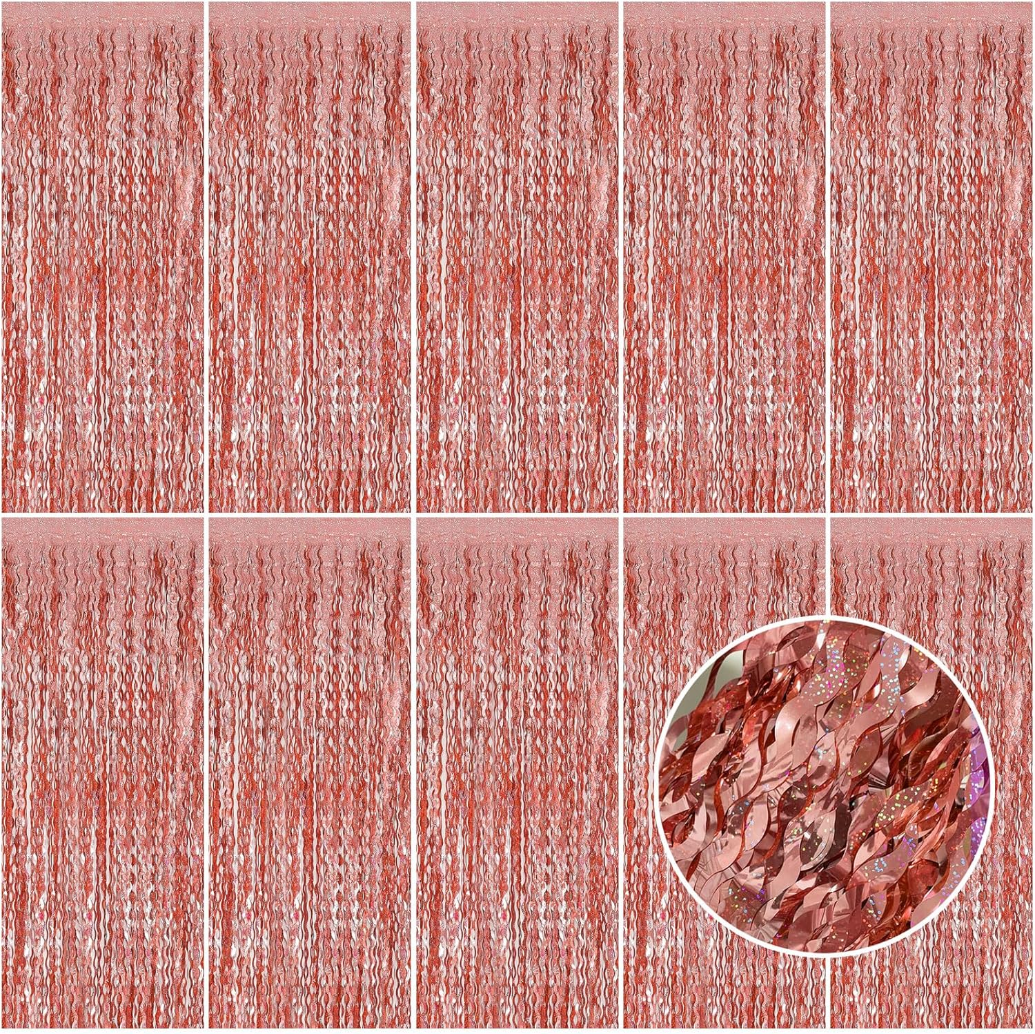 - Rose Gold Birthday Decorations:10 Pack, each curtains size is 3.28 ft x 6.56 ft, enough length foil fringe backdrops are perfect for the door, wall and table,feel free to cut to any length you want.