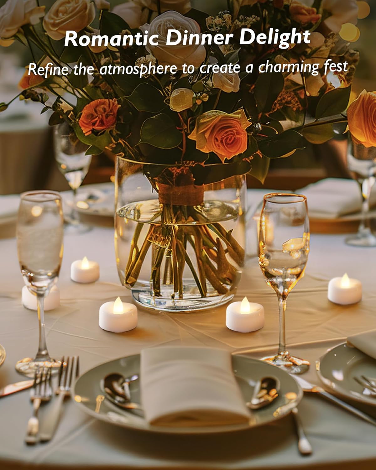 - Smart Remote With Timer: You can use the ten key remote to control the tea candles, adjust the brightness or change the flickering mode; You can also set timers 2 4 6 or 8 hours, every 24 hour cycle timer to save battery power