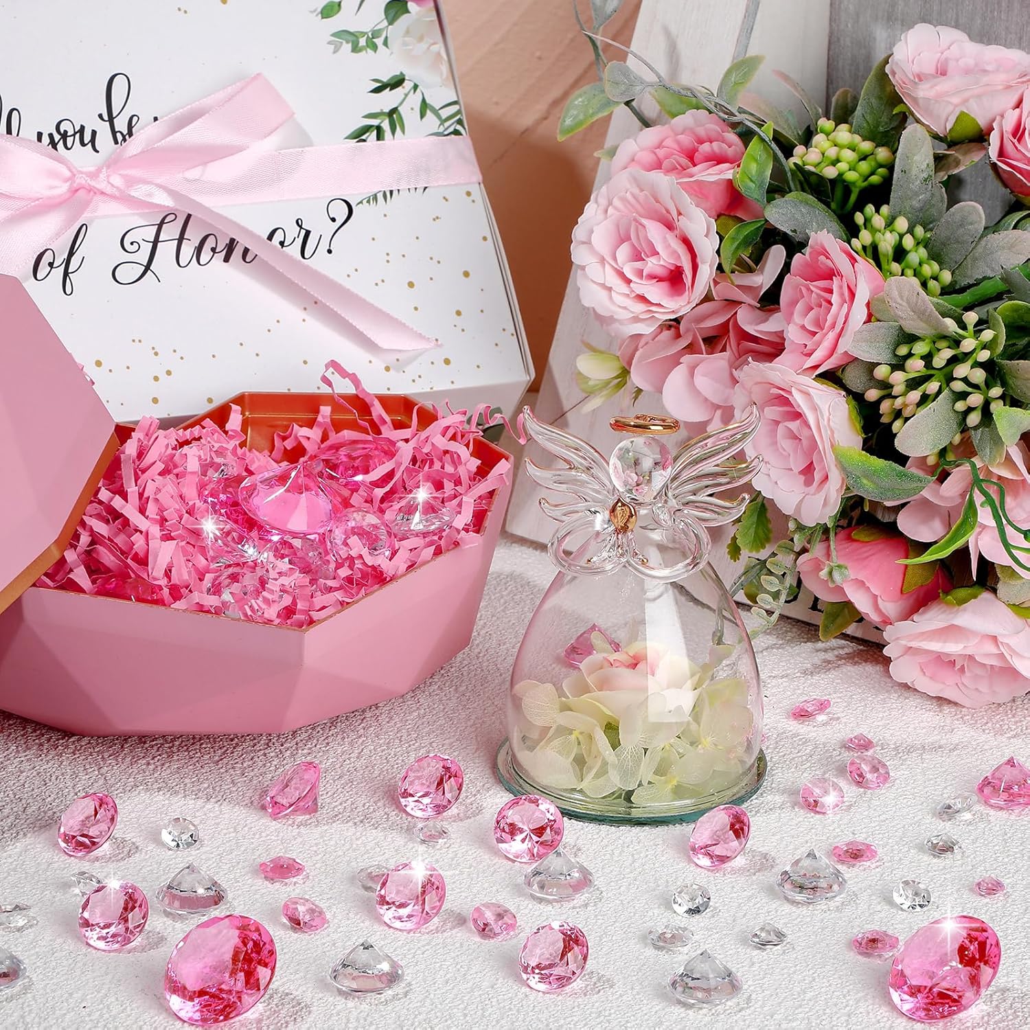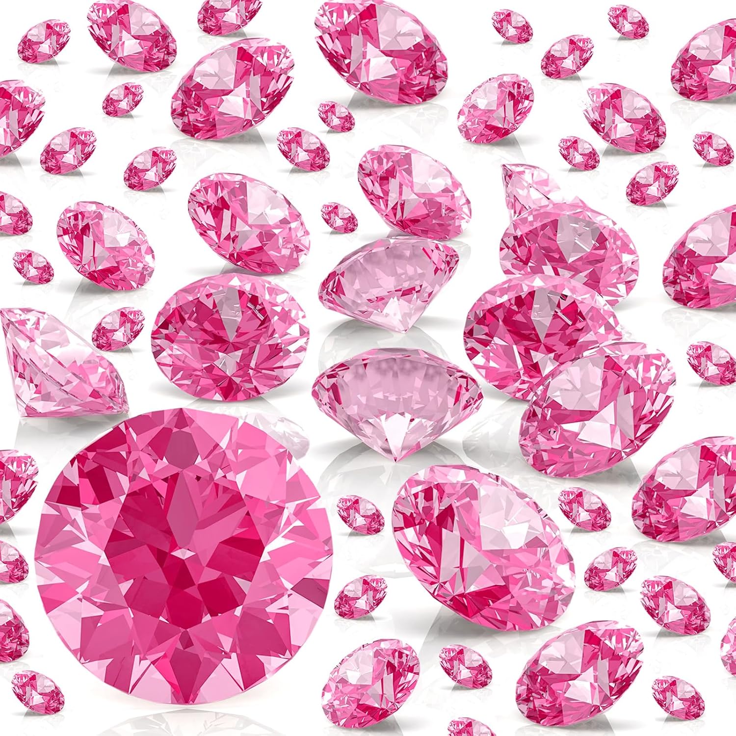 Hicarer 800 Pieces Diamond Decorations Acrylic Diamond Table Scatter Crystals for Table for Vase Fillers Party Decorations(20, 12, 10, 6, 3mm,Pink)