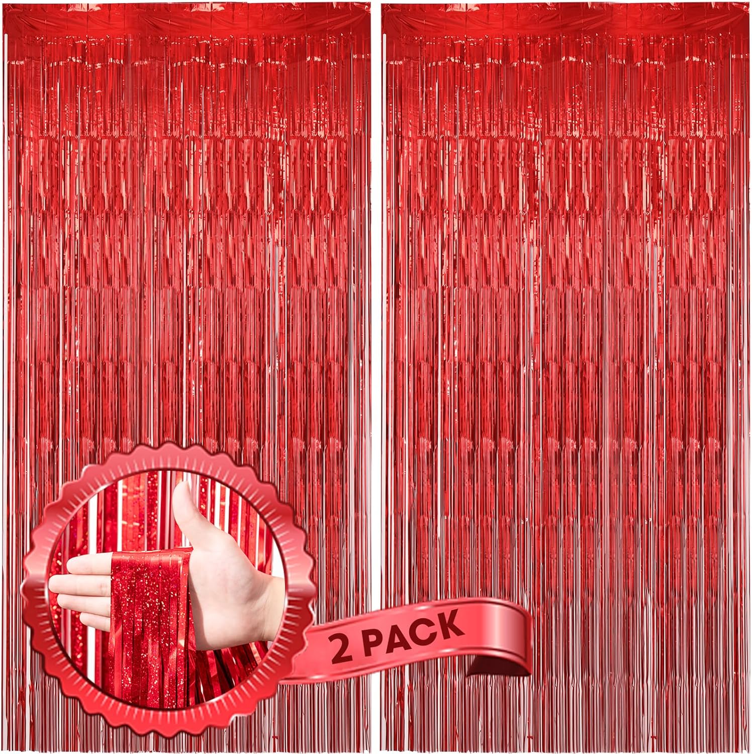 - Premium Material: This Laser Red foil curtain backdrop is made of stable tinsel, non-fading, stay shiny and reusable. Unfold it and then enjoy your glittering party