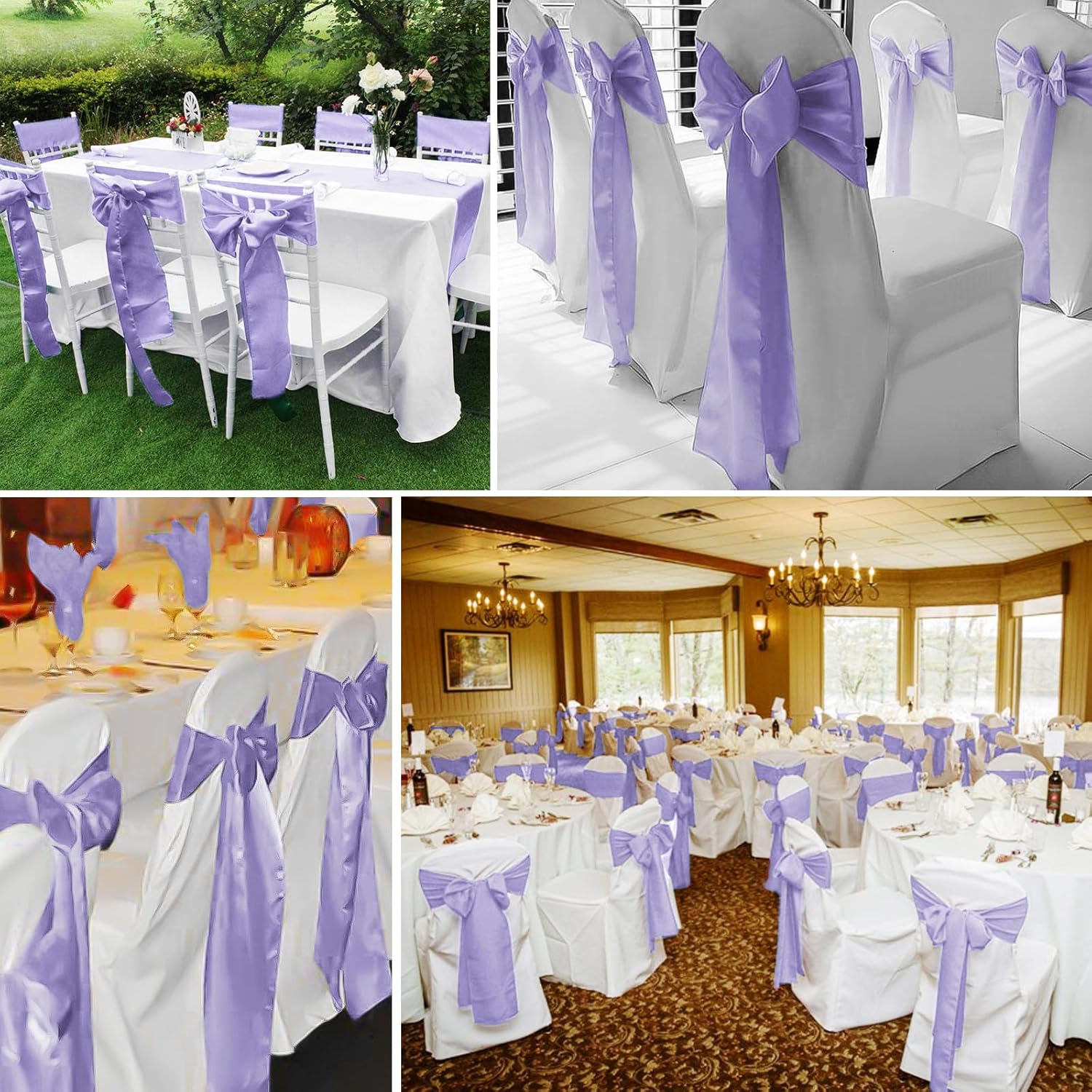 fani 60 PCS Lavender Purple Satin Chair Sashes Bows Universal Chair Cover for Wedding Reception Restaurant Event Decoration Banquet,Party,Hotel Event Decorations (7 x 108 inch)