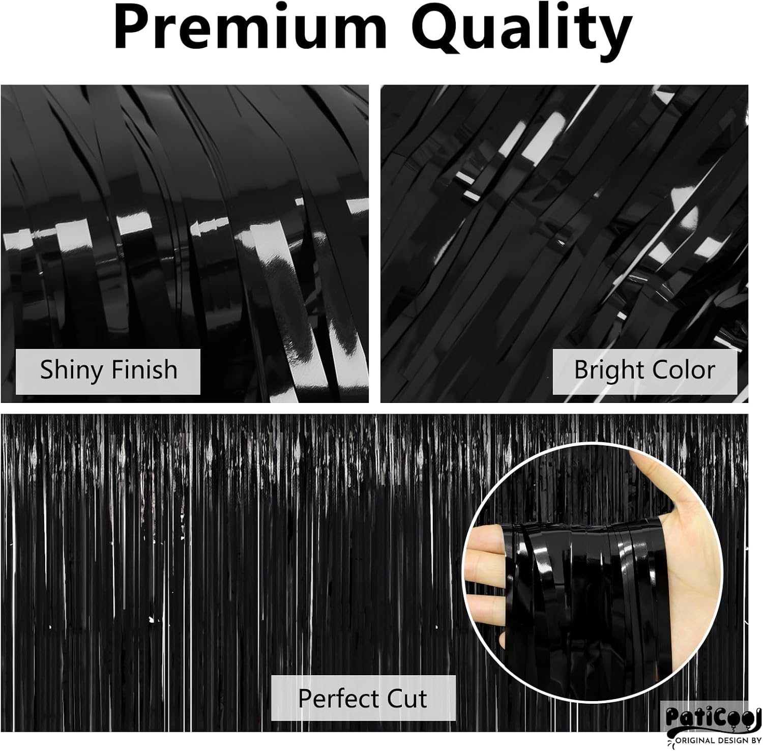 - ππΞΌπ¦ πππππππ | ππππ ππππππ - This black glitter tinsel backdrop is made of 23ΞΌm plastic film, not easy to fall apart. But due to the inherent characteristics of the material, it is still easy to tear even if we use thicker material, so you need to be very careful when using it.
