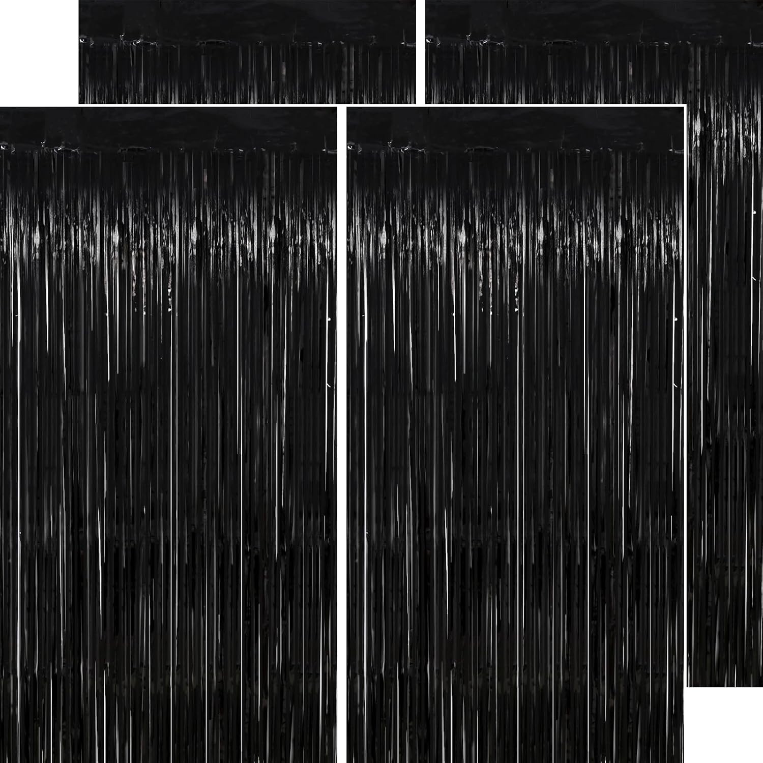 Black Streamers Party Decorations - Thicken 4 Pack 3.2 x 8.2 FT - Black Tinsel Foil Fringe Backdrop Curtains, Photo Booth Props for Birthday, Halloween, Retirement, Bachelor Party Decorations