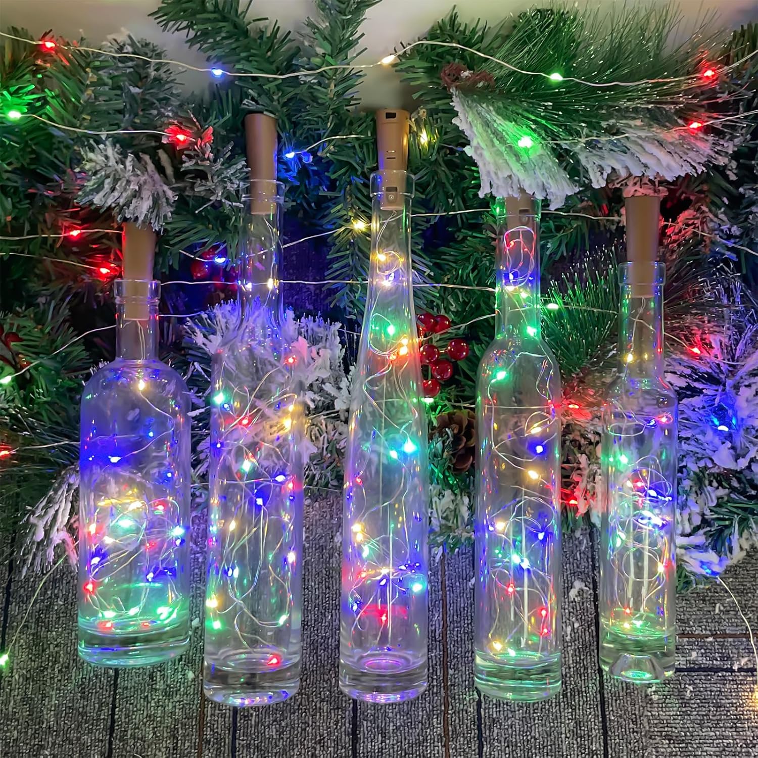 Dual Battery Pack LED Bottle Lights, 6.6ft 20led Double The Lighting Time, for Indoor and Outdoor use, for Christmas,(6 Pack, Multicolour(Dual Battery Pack))