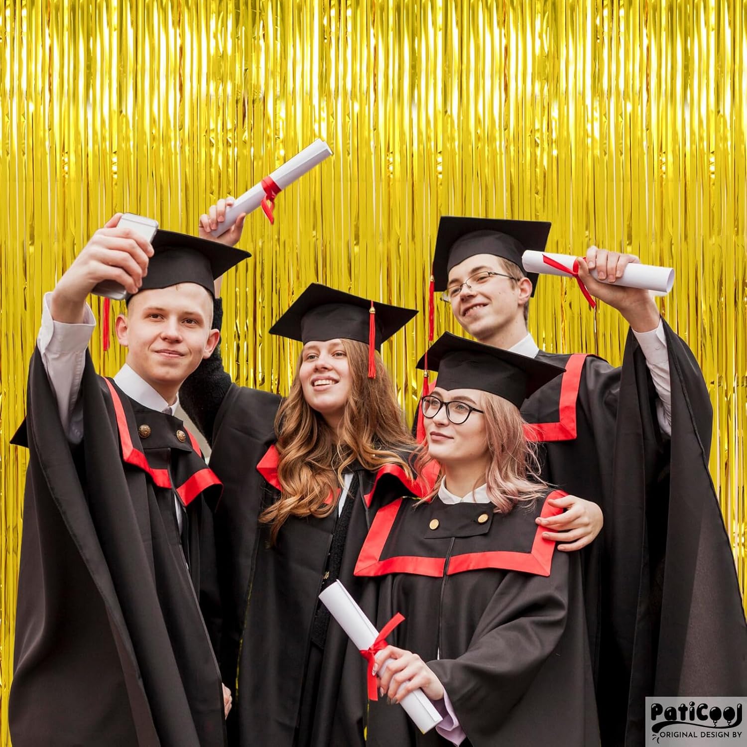 Gold Streamers Graduation Decorations - Thicken 4 Pack 3.2 x 8.2 FT - Golden Tinsel Foil Fringe Backdrop Curtains Party Backdrop for Birthday, Prom, Hollywood, Anniversary Party Decorations