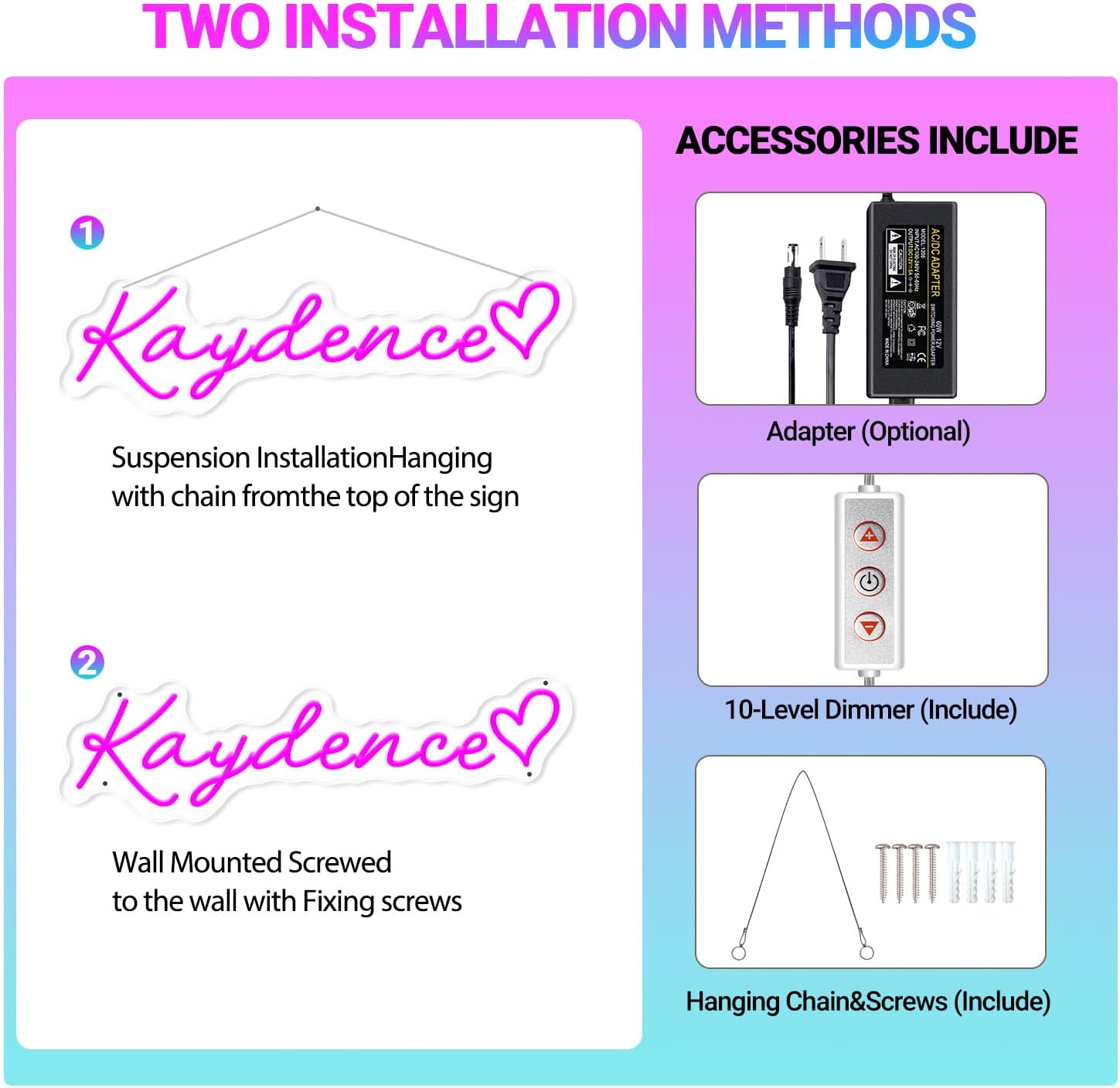 - 【CUSTOM NEON SIGN】 Create Your Unique Neon Masterpiece! Design with names, quotes, symbols, or even upload your own artwork (JPG/PNG) – perfect for kids’ room decor, wedding vows, or personalized gifts! Our online design tool makes customization easy and fun!