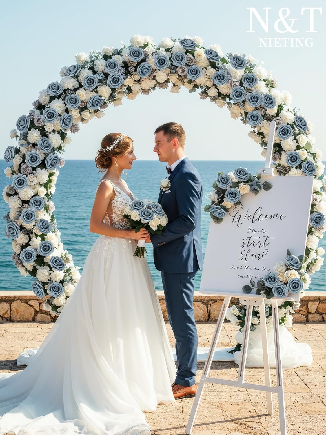 N&T NIETING Artificial Flowers, 50pcs Foam Roses Fake Flowers DIY Wedding Party Cake Decoration, Home Display, Dusty Blue Gray