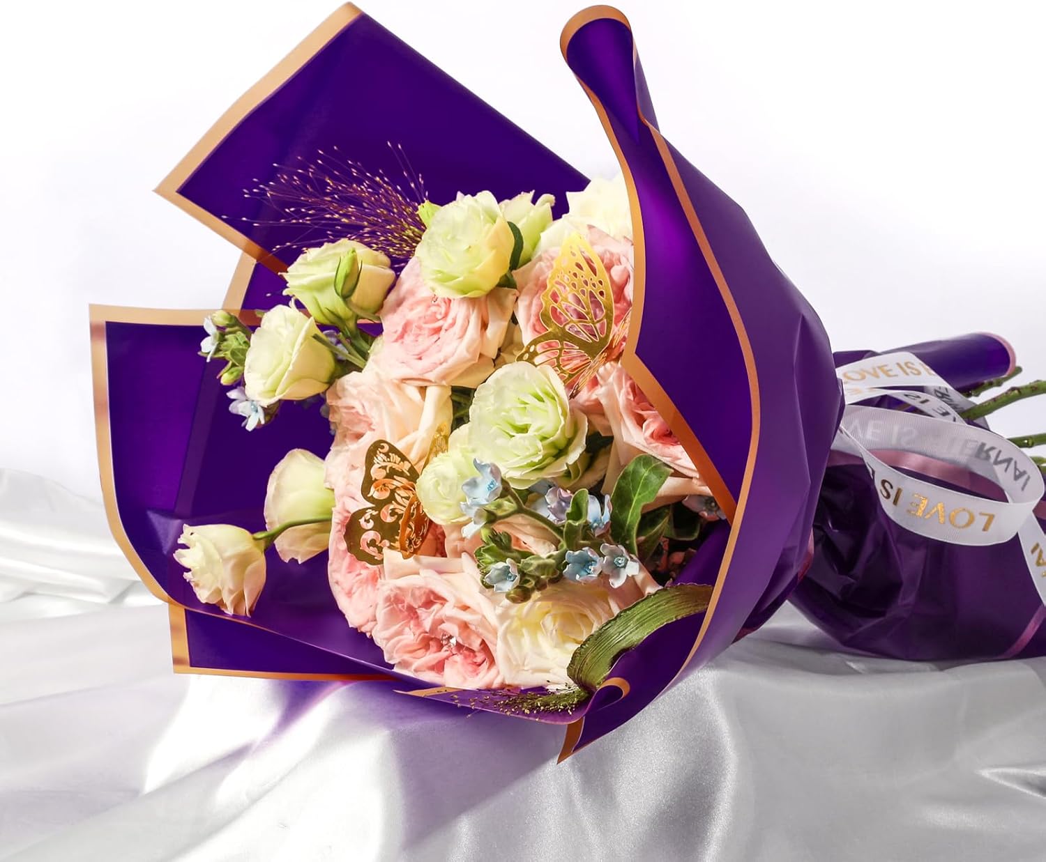 - 【Elegant Design】The florist paper is designed with gold edges, features glossy and vibrant colors, smooth and comfortable to touch. The lightweight and sturdy nature of the paper ensures a professional and exquisite appearance,Is the perfect choice for bouquet packaging and gift box packaging