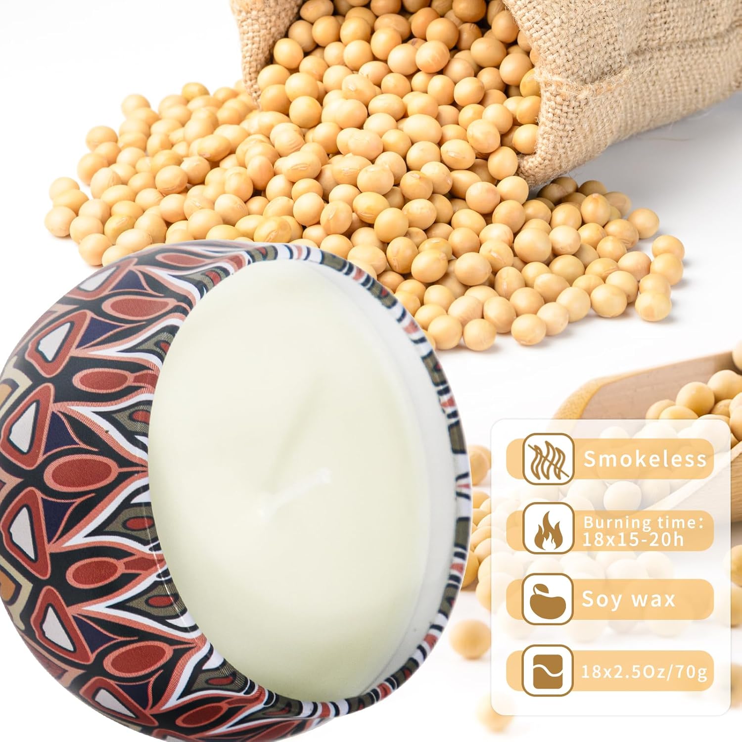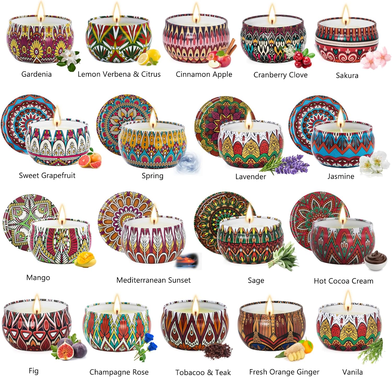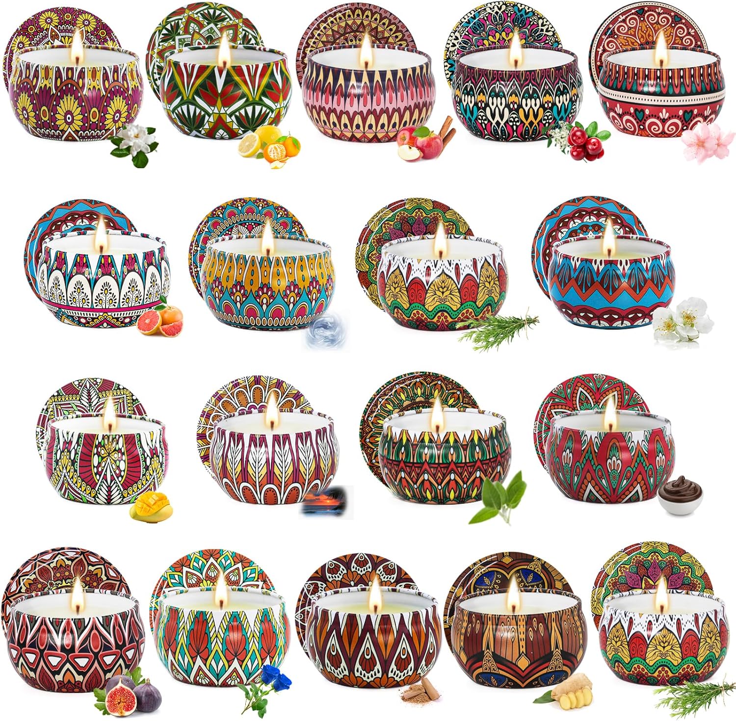 - 【18 Pack Candles Sets】18 Pack Candles Sets, 18 Natural Scents, Exquisite Tin Can, You can enjoy 18 different scents in one purchase, Emptying cans AreElegant Ornament & Reusable Container