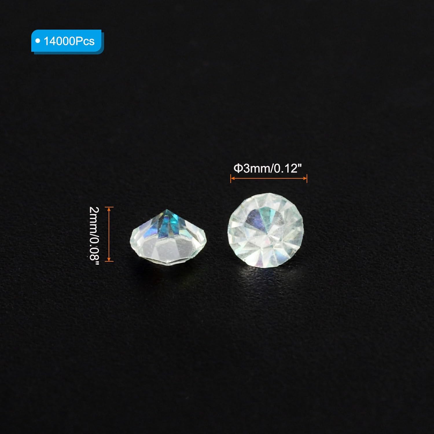 - Color: Mint Green AB; Material: Acrylic; Size: 3mm x 2mm/ 0.12 x 0.08 inch (Dia.x H); Packing List: 14000Pcs x Acrylic crystal diamonds