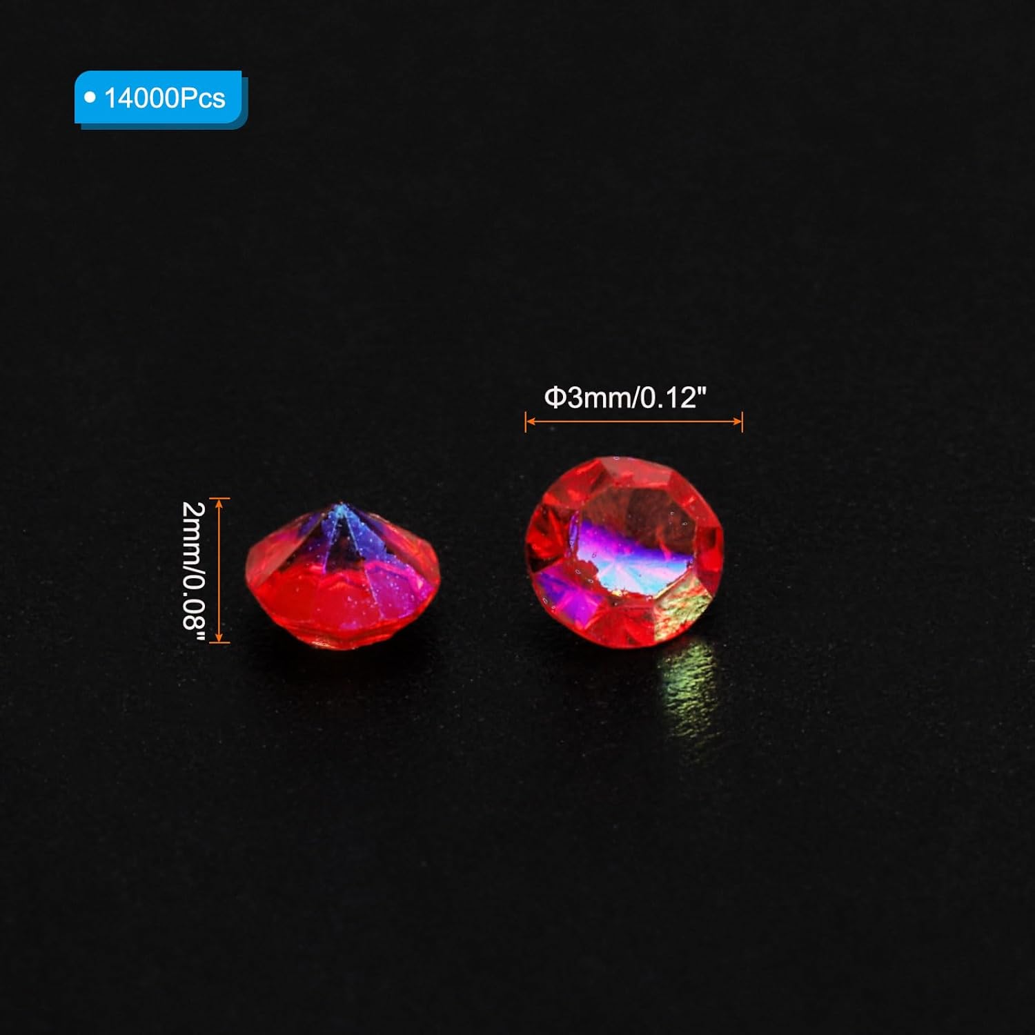 - Color: Red AB; Material: Acrylic; Size: 3mm x 2mm/ 0.12 x 0.08 inch (Dia.x H); Packing List: 14000Pcs x Acrylic crystal diamonds