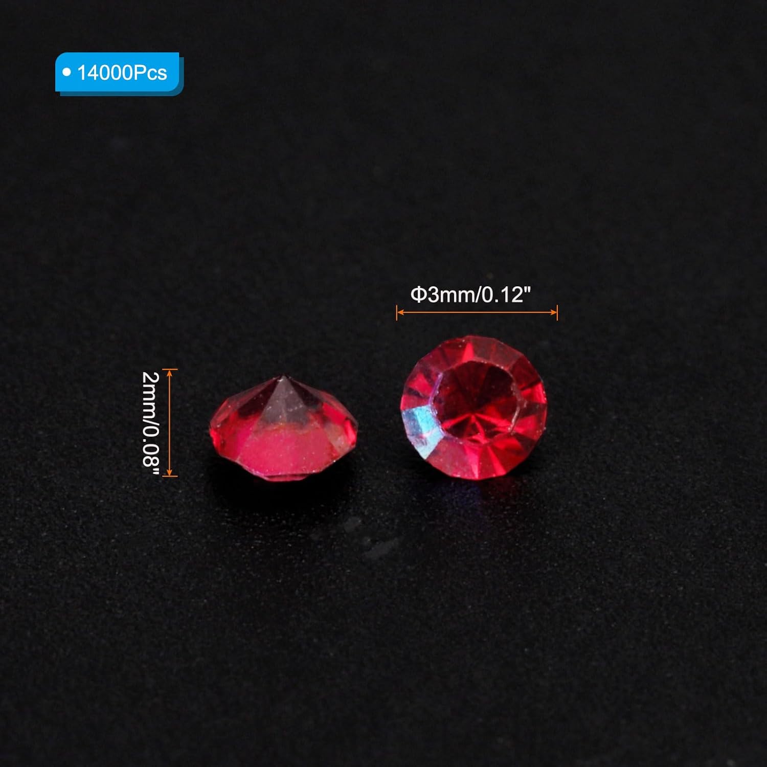 - Color: Burgundy AB; Material: Acrylic; Size: 3mm x 2mm/ 0.12 x 0.08 inch (Dia.x H); Packing List: 14000Pcs x Acrylic crystal diamonds