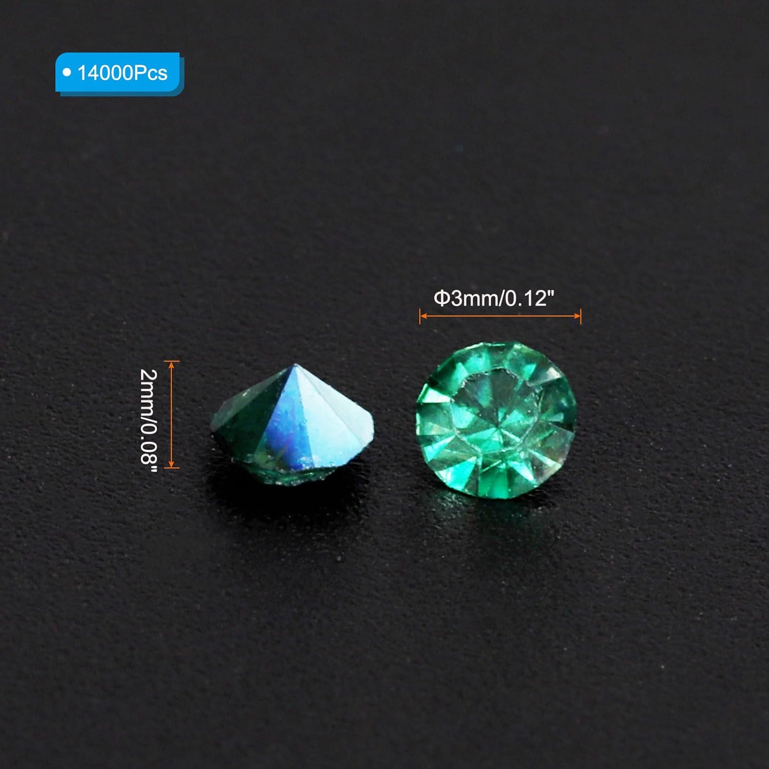 - Color: Dark Green AB; Material: Acrylic; Size: 3mm x 2mm/ 0.12 x 0.08 inch (Dia.x H); Packing List: 14000Pcs x Acrylic crystal diamonds
