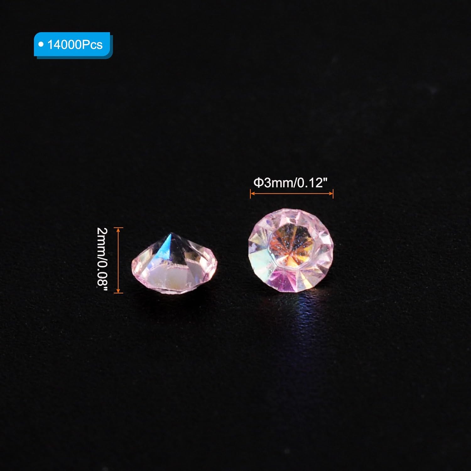 - Color: Light Pink AB; Material: Acrylic; Size: 3mm x 2mm/ 0.12 x 0.08 inch (Dia.x H); Packing List: 14000Pcs x Acrylic crystal diamonds