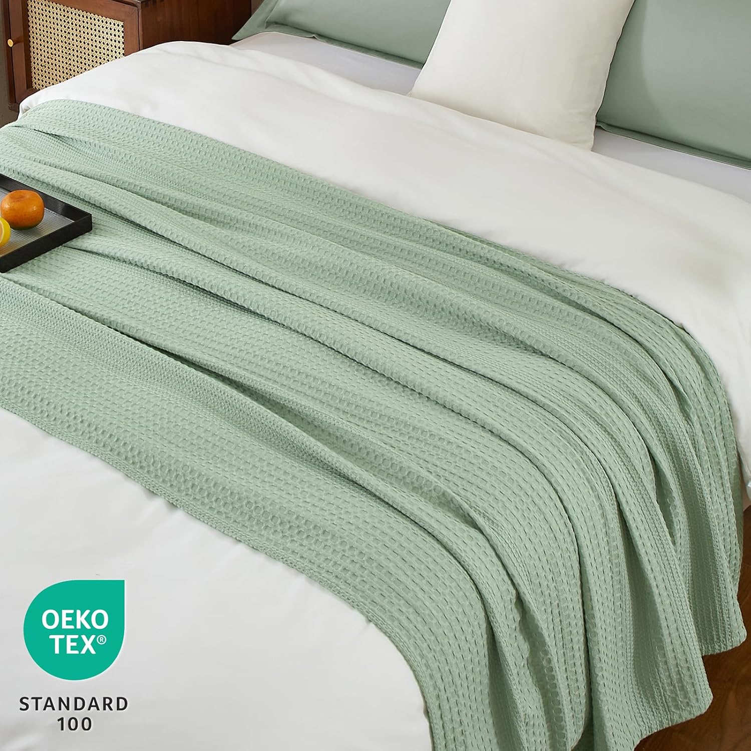 PHF Lightweight Waffle Weave Blanket King Size, Breathable & Ultra Soft, 104"x 90" Soft & Cozy Thin Blanket for All Season & Hot Sleepers, Bed, Home Decor - Sage Green