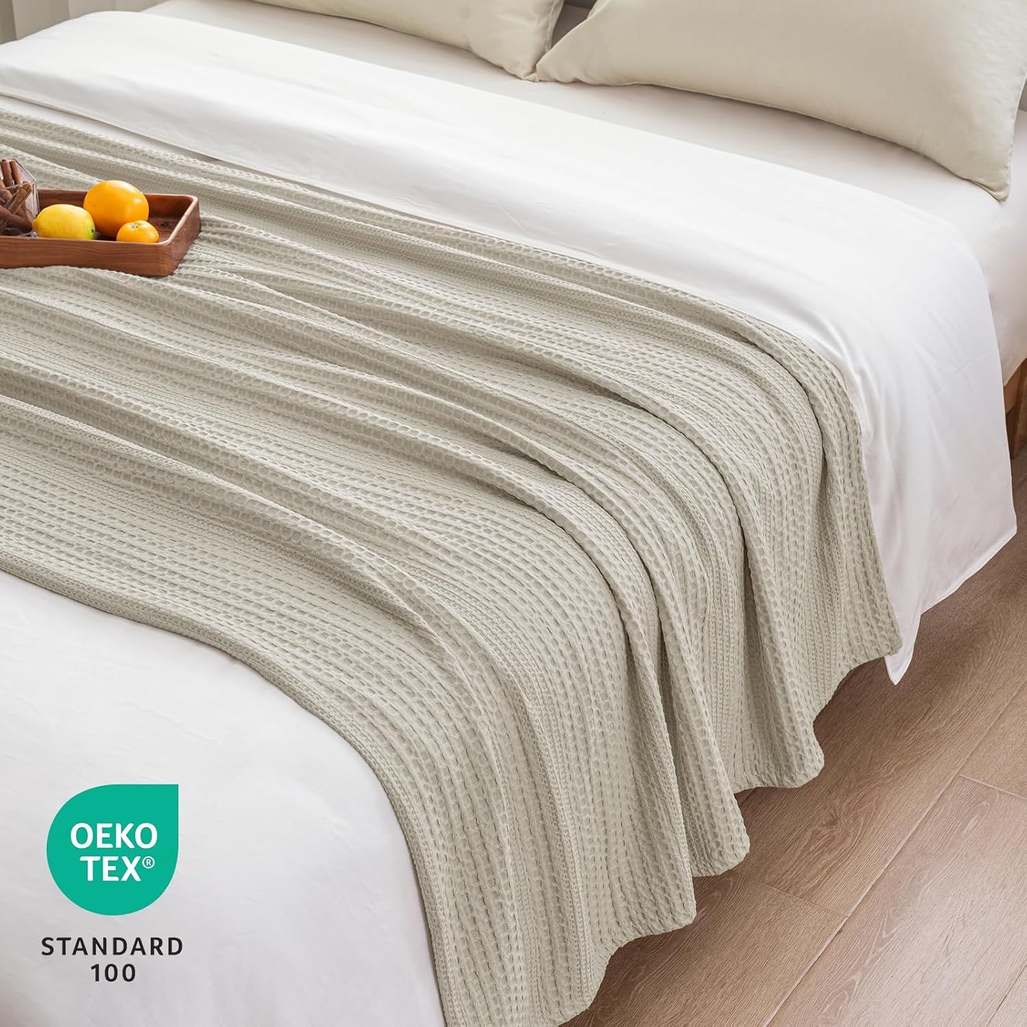 - Dimensional & Fashionable Waffle Design: The attractive yet stylish waffle design, combined with sophisticated weaving techniques, creates a nice looking texture but also adds to the soft feel of this relatively thin blanket. The special construction helps promote air circulation, absorb moisture and improve breathability of the blanket, thereby enhancing its comfort. Many woven blankets are scratchy and stiff. This one is butter soft and smooth.