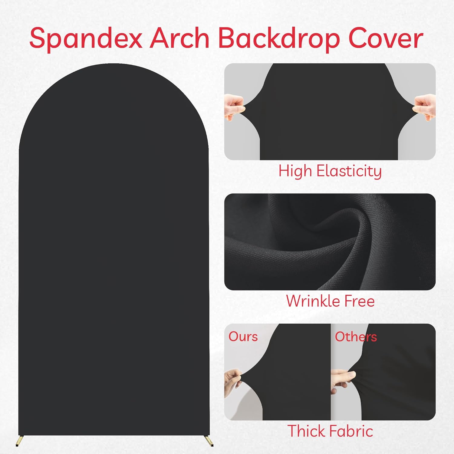 Arch Backdrop Stand Cover 6Ft Black Thick Spandex Fabric Arch Backdrop Cover High Elasticity Fitted Round Top for Wedding Birthday Party Baby Shower Garden Decoration