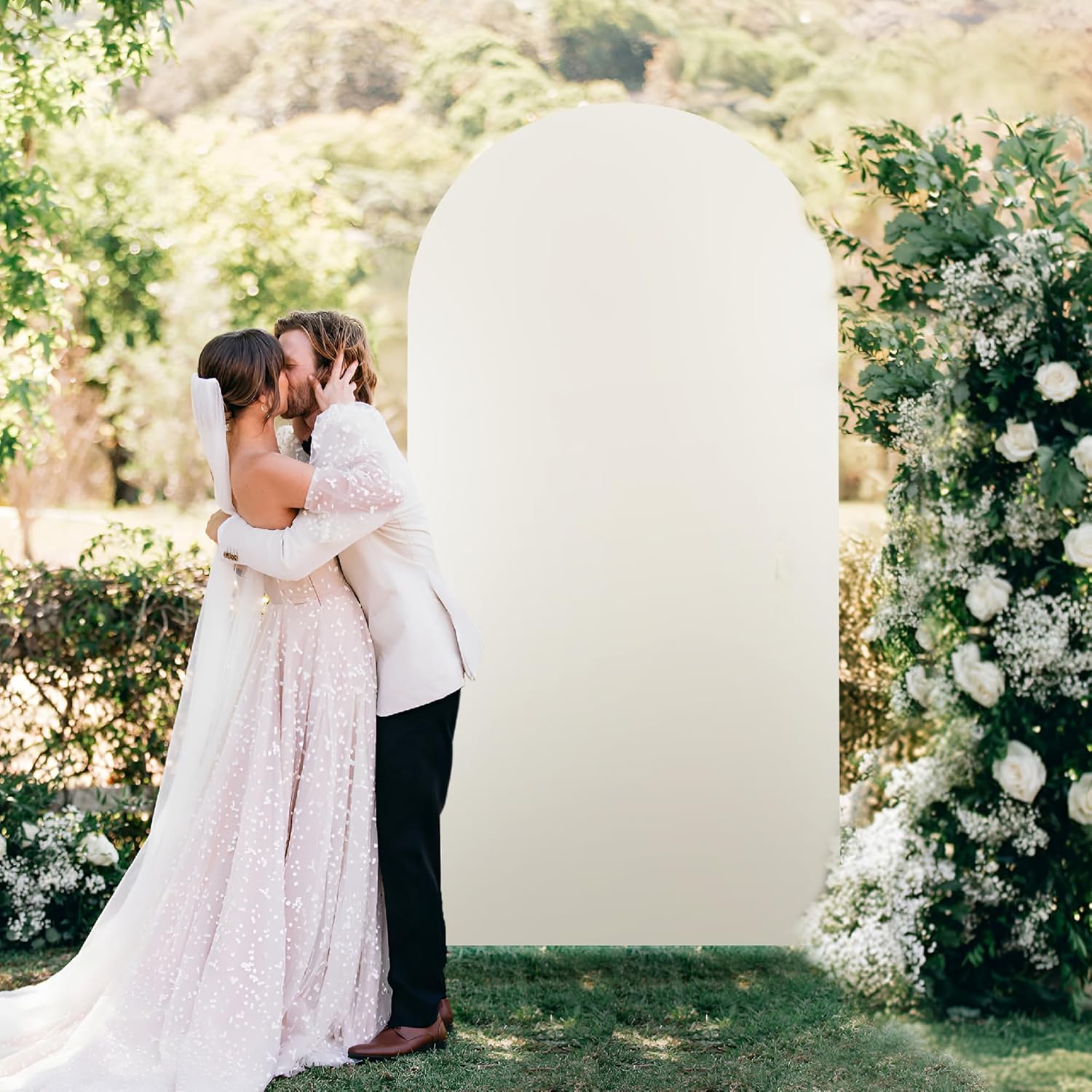 Arch Backdrop Stand Cover 6.6Ft Beige Thick Spandex Fabric Arch Backdrop Cover High Elasticity Fitted Round Top for Wedding Birthday Party Baby Shower Garden Decoration