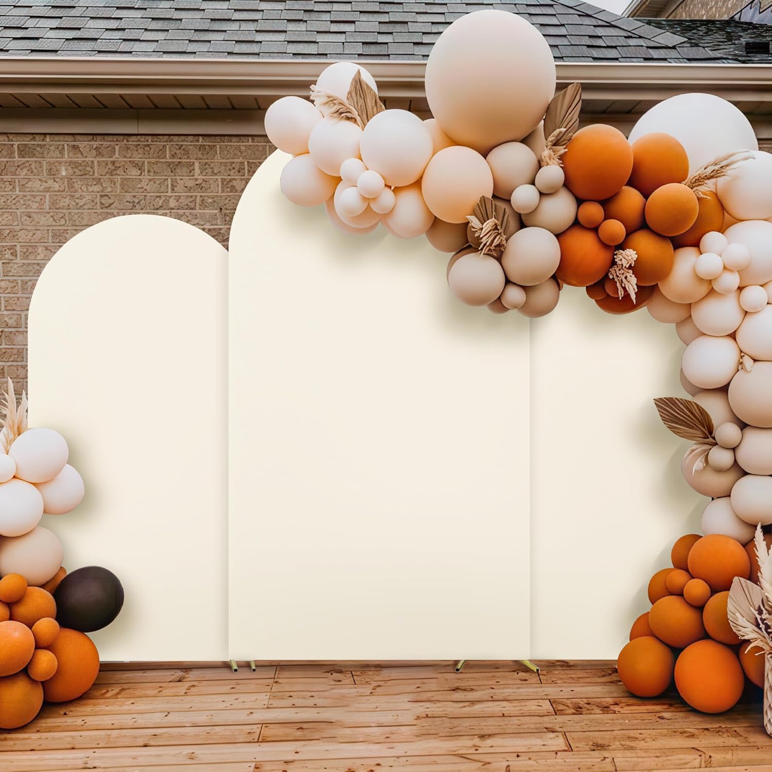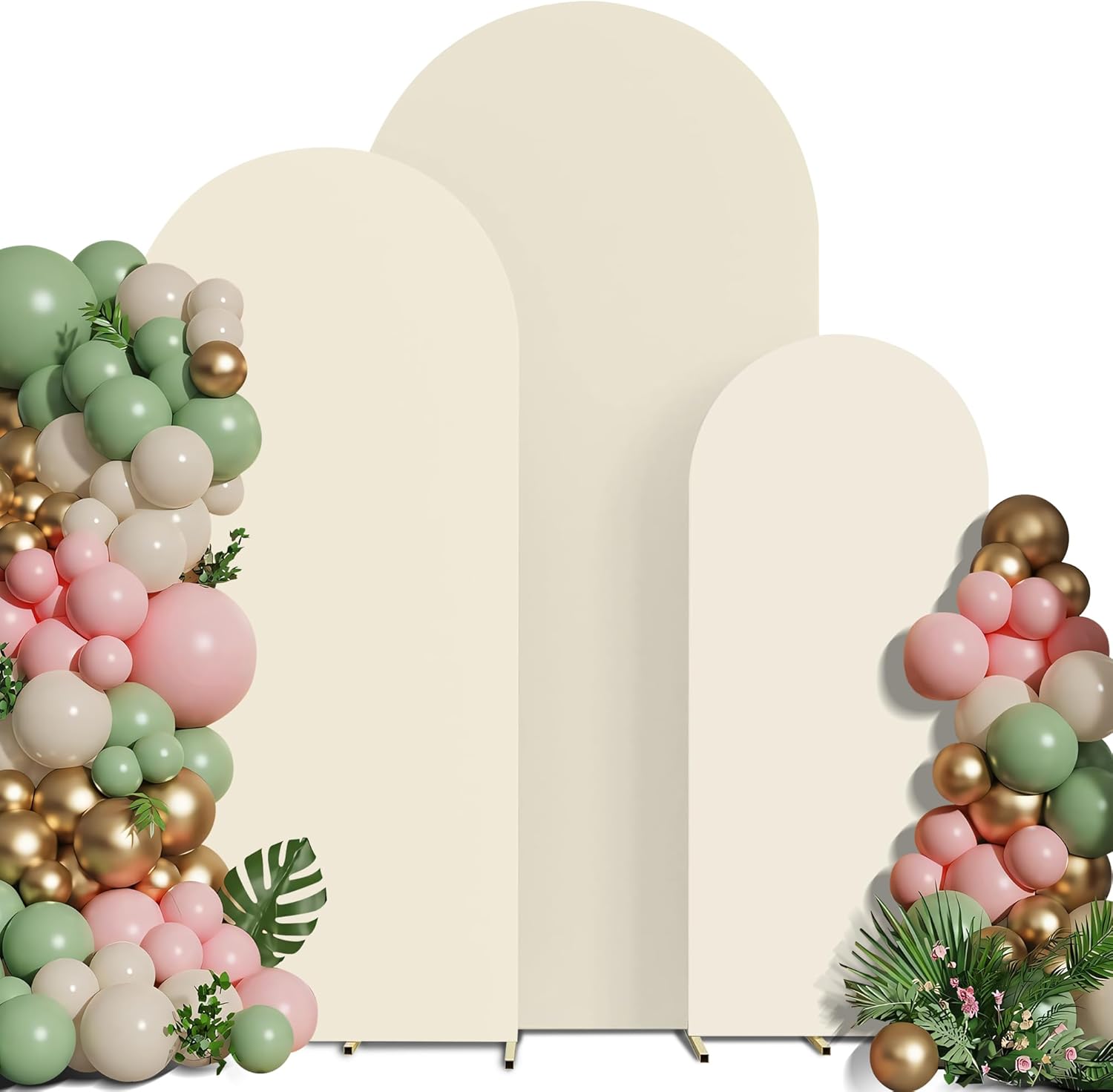 Spandex Anti Wrinkle Arch Backdrop Cover - High Elastic Fitted Arch Stand Cover Set of 3, Beige Round Top Chiara Backdrop for Wedding Birthday Party Garden Decor 4FT, 5FT, 6FT