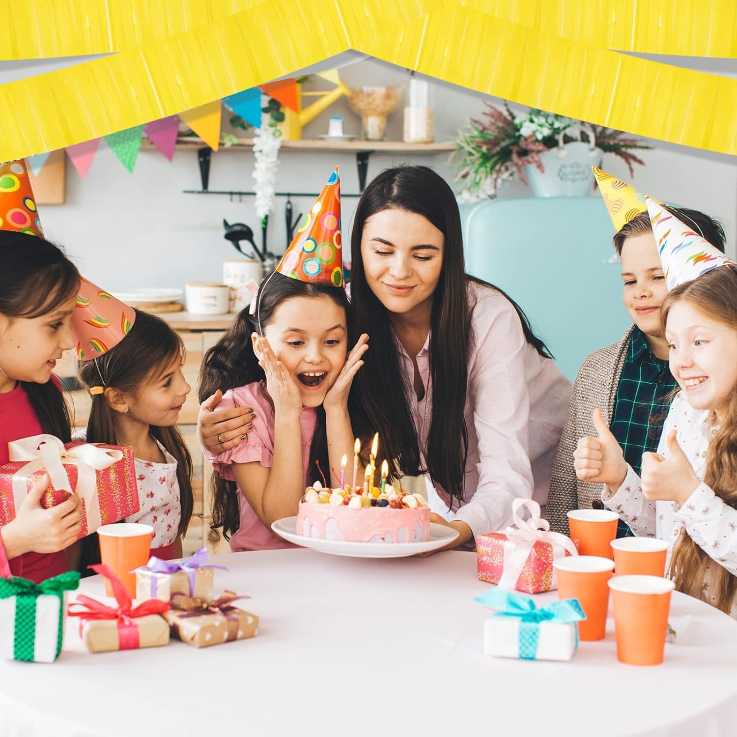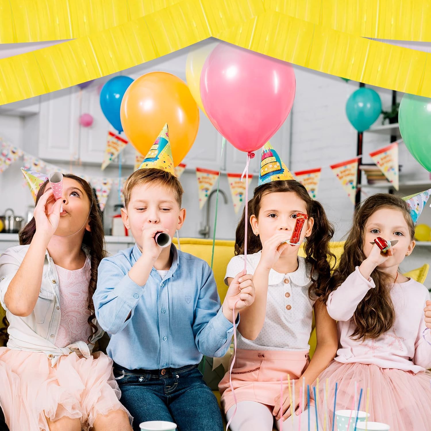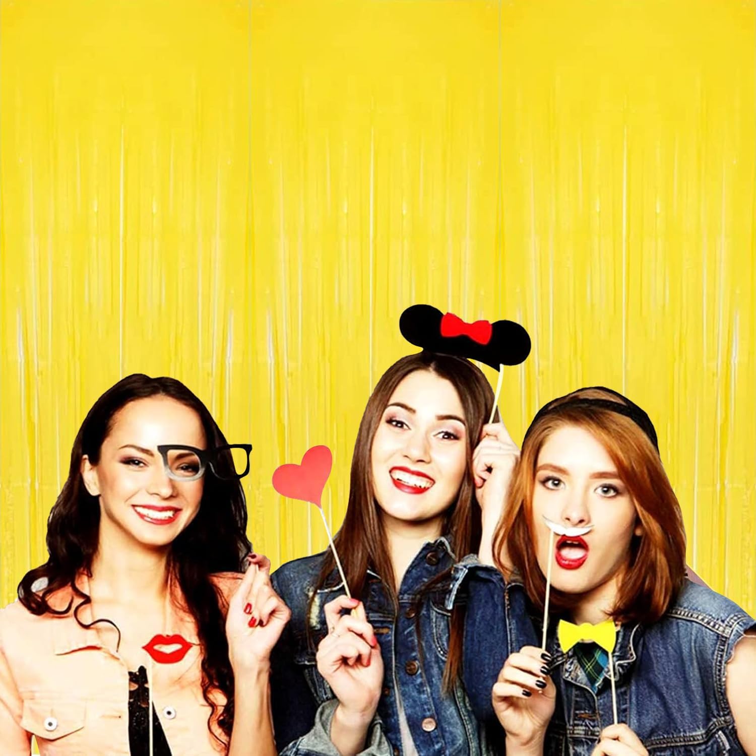 4P Metallic Foil Fringe Tinsel Streamer Banner Table Skirts for Rectangle Tables Backdrop Garland Curtains for Parade Floats Wedding Graduation Anniversary Birthday Parties Decoration (Makaron Yellow)