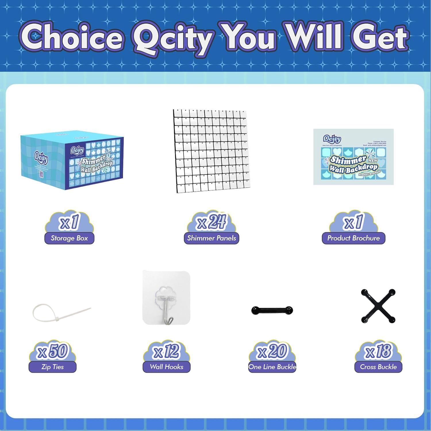 - Complete Kit: Each package includes 24 sequin wall panels (12"x12" each), along with 50 zip ties, 12 wall hooks, 20 single-line buckles, 18 cross buckles, and an installation manual. (Backdrop stand not included.)