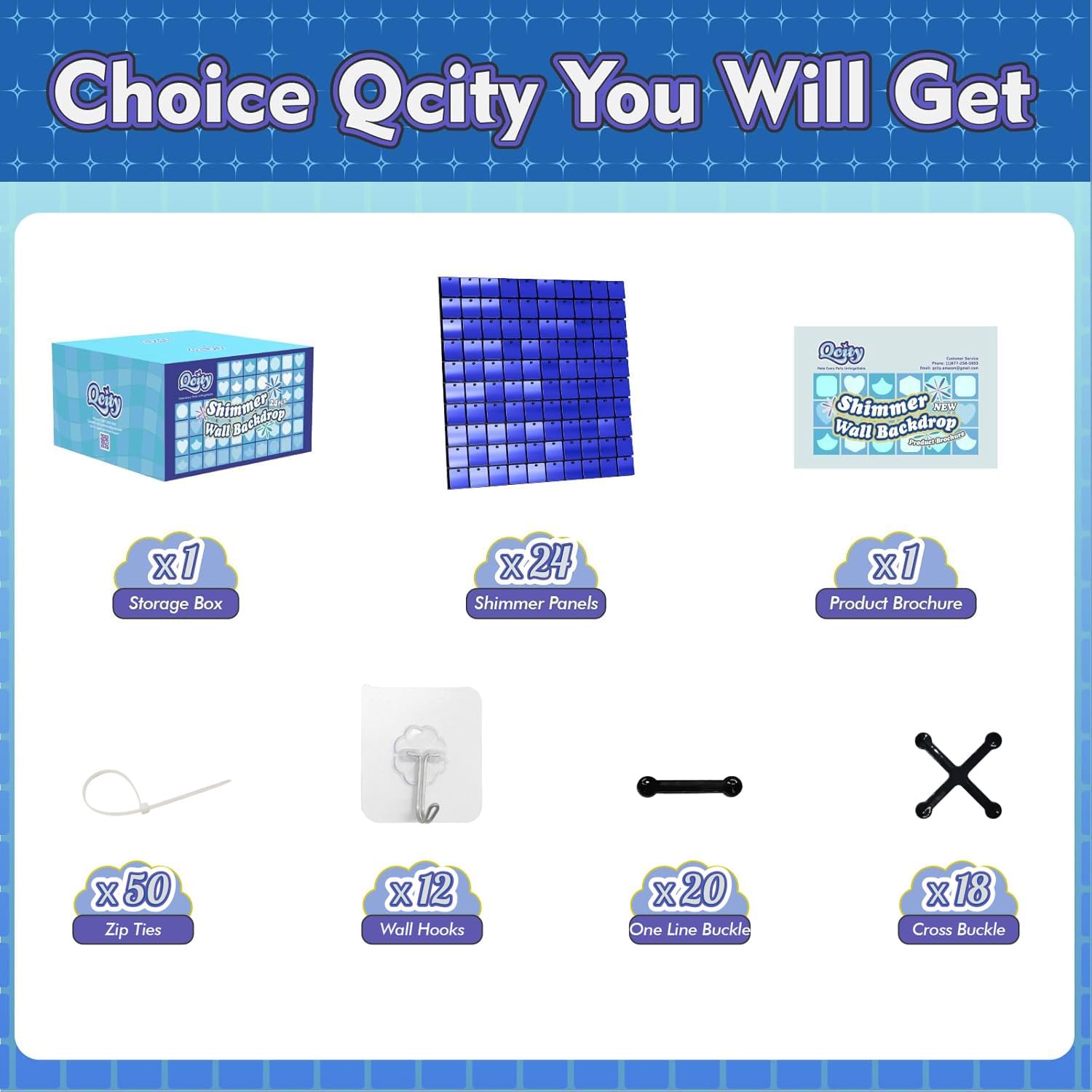 Qcity Blue Shimmer Wall Backdrop 24PCS, Black Back Not See-Through Design, Square Sequin Glitter Backdrop Panel, Perfect for Outdoor Events, Birthdays, Wedding and Party Decoration