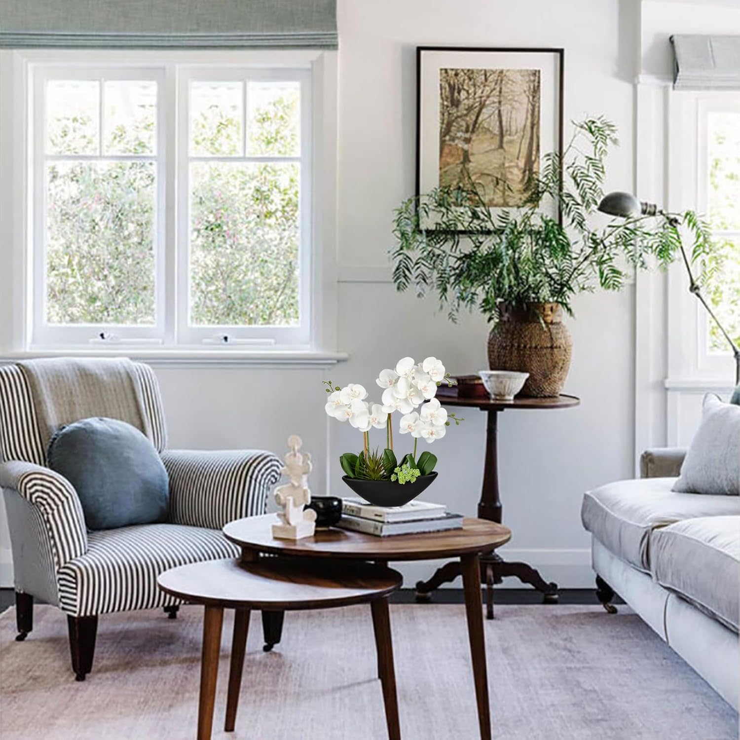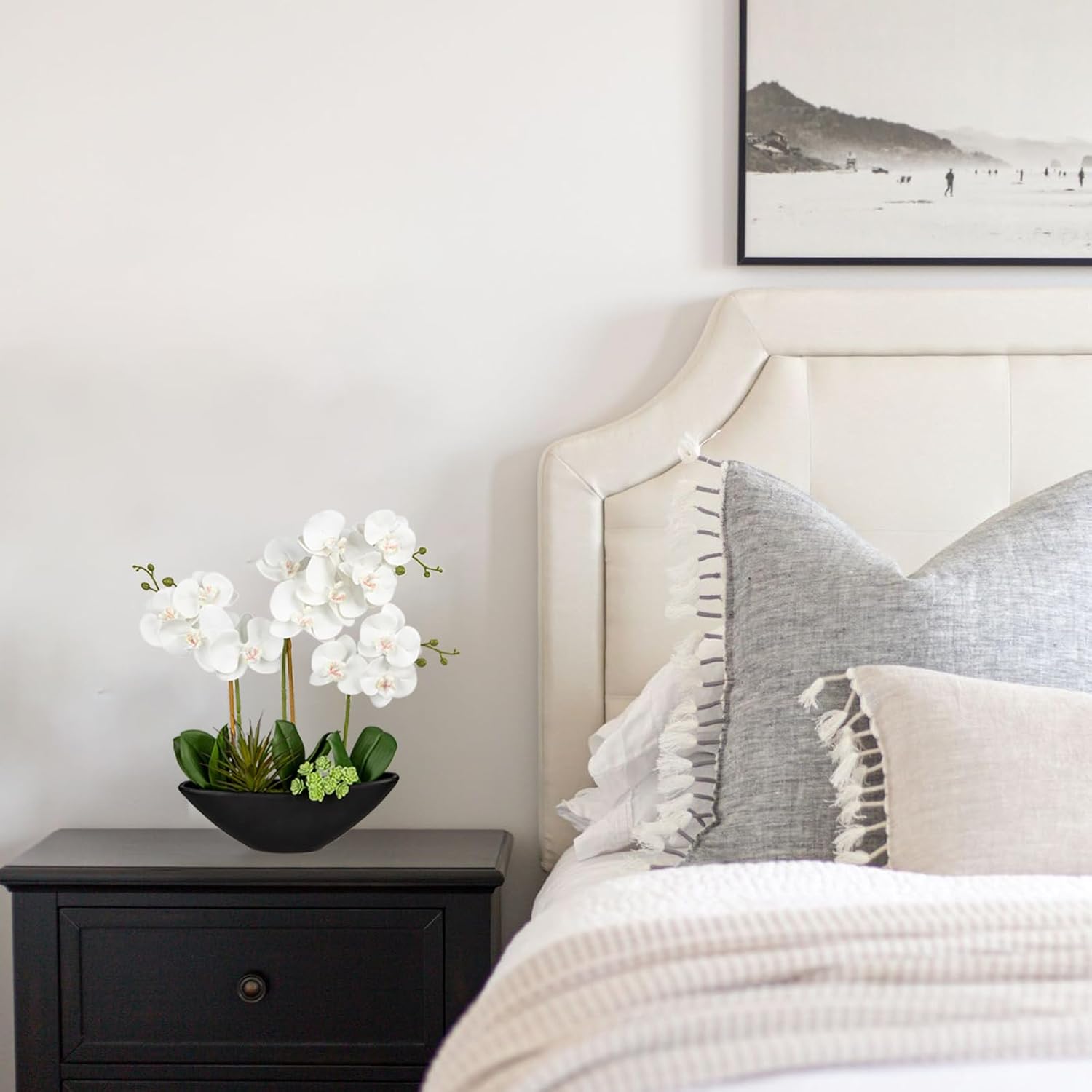 - Dimensions: Standing 17 inches high, the white orchid flower arrangement includes a ceramic boat-shaped vase that measures 11 inches in diameter, making it an ideal size for various decor settings in both home and office environments.