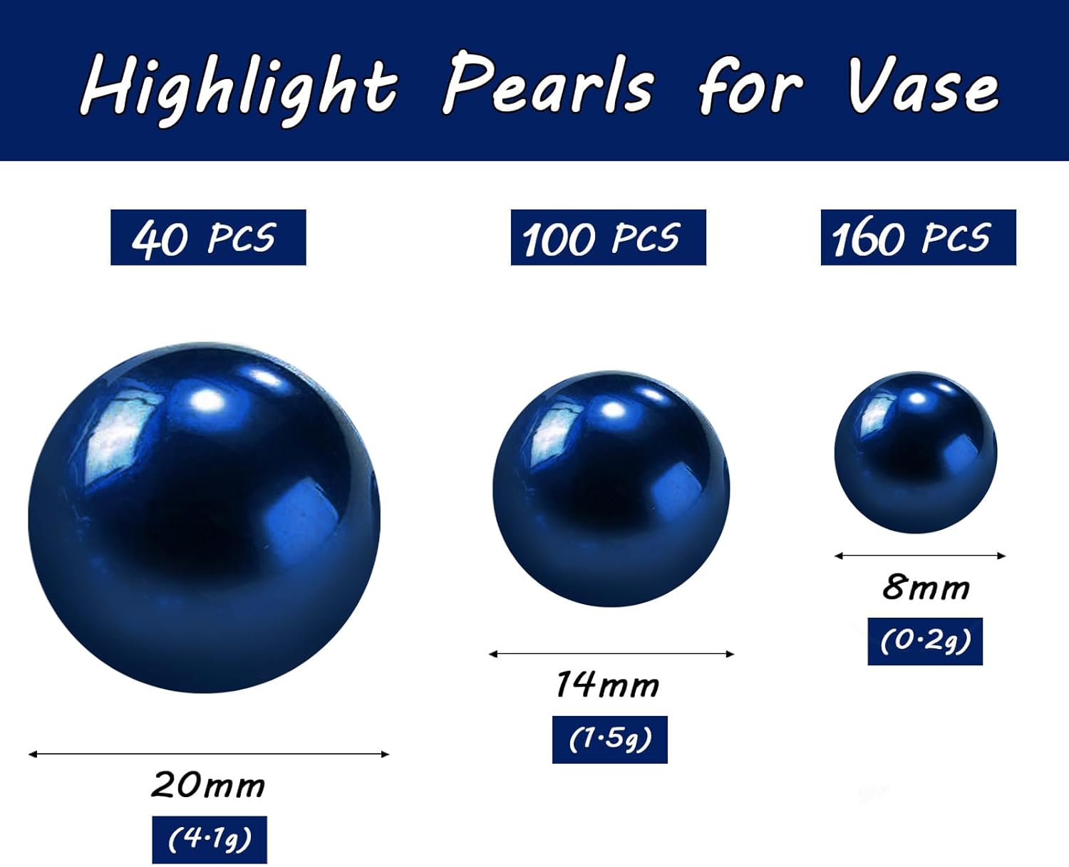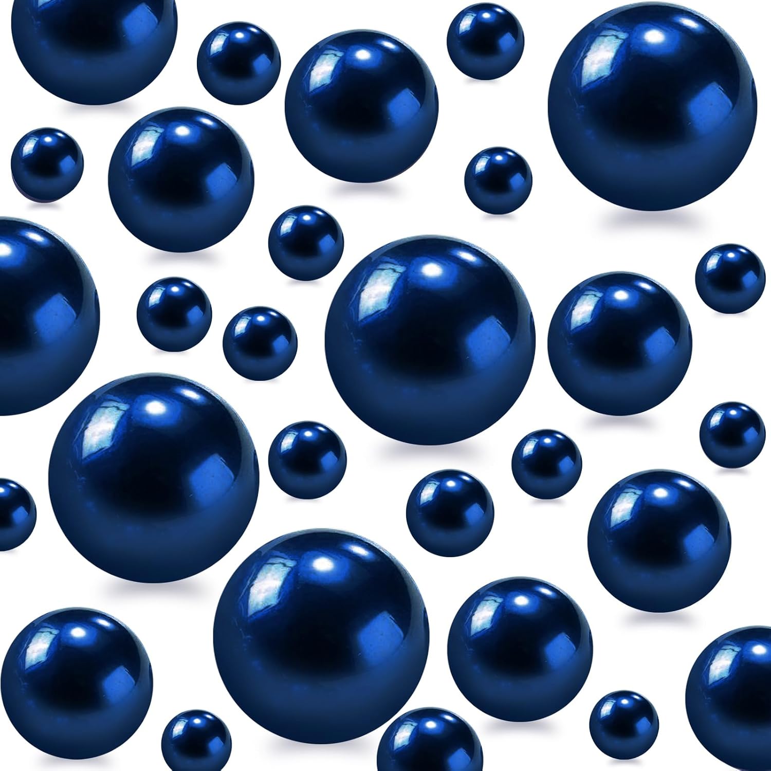 300Pcs Navy Blue Polished No Hole Faux Pearl Beads for Vase Filling Decorations, Plastic Pearls Vase Fillers, Table Scatters, Wedding Centerpiece, Home Decor, 8/14/20 mm