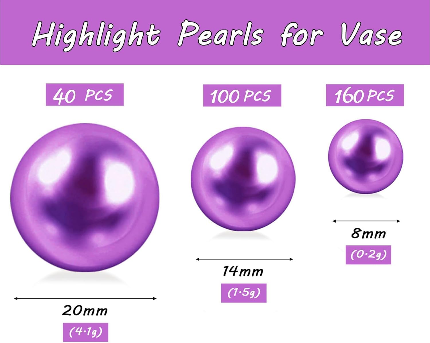 300Pcs Purple Polished No Hole Faux Pearl Beads for Vase Filling Decorations, Plastic Pearls Vase Fillers, Table Scatters, Wedding Centerpiece, Home Decor, 8/14/20 mm