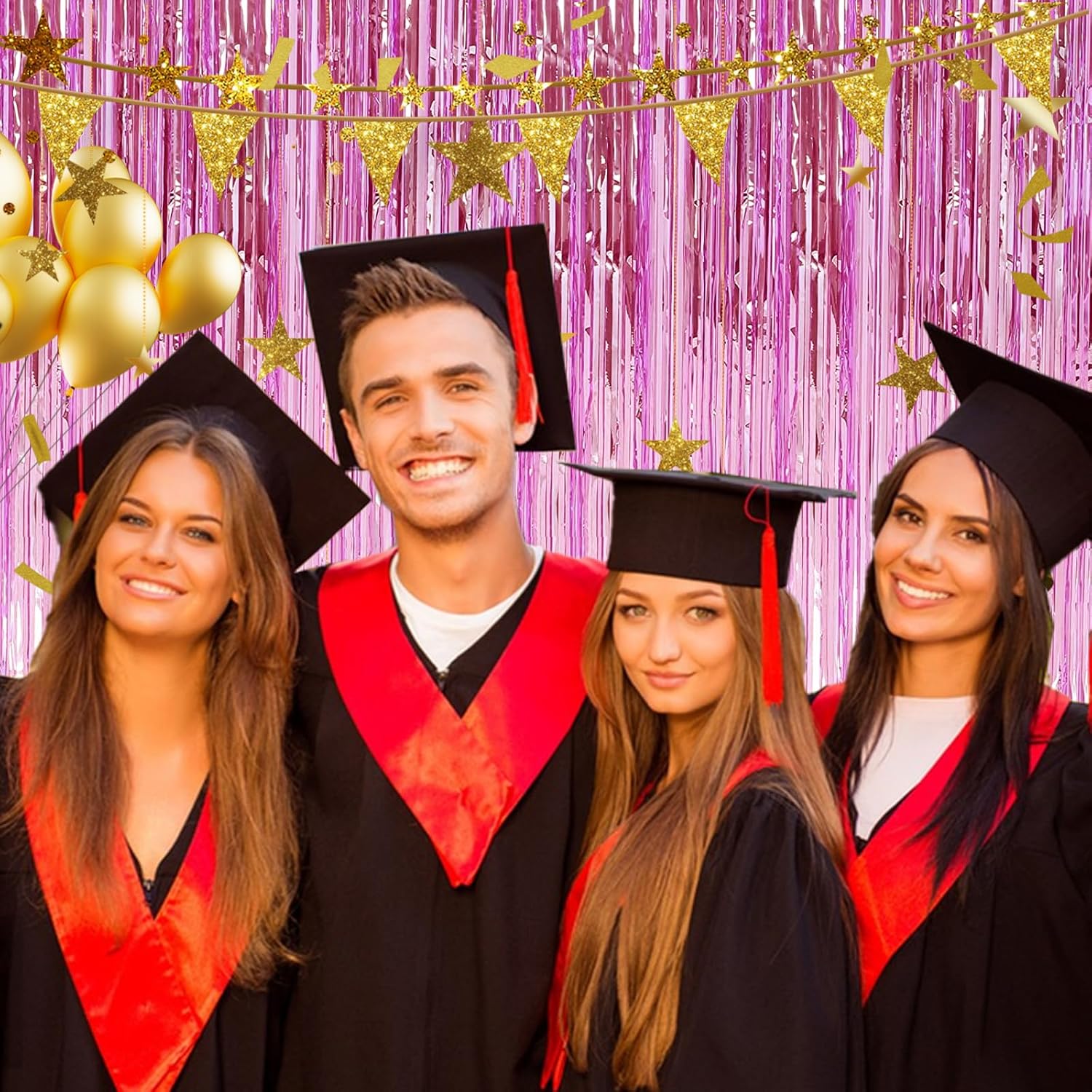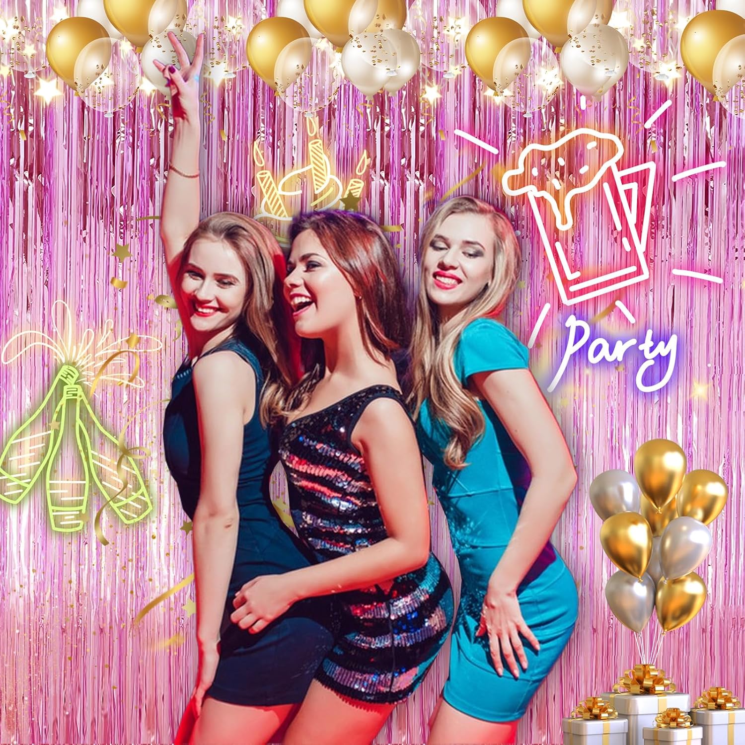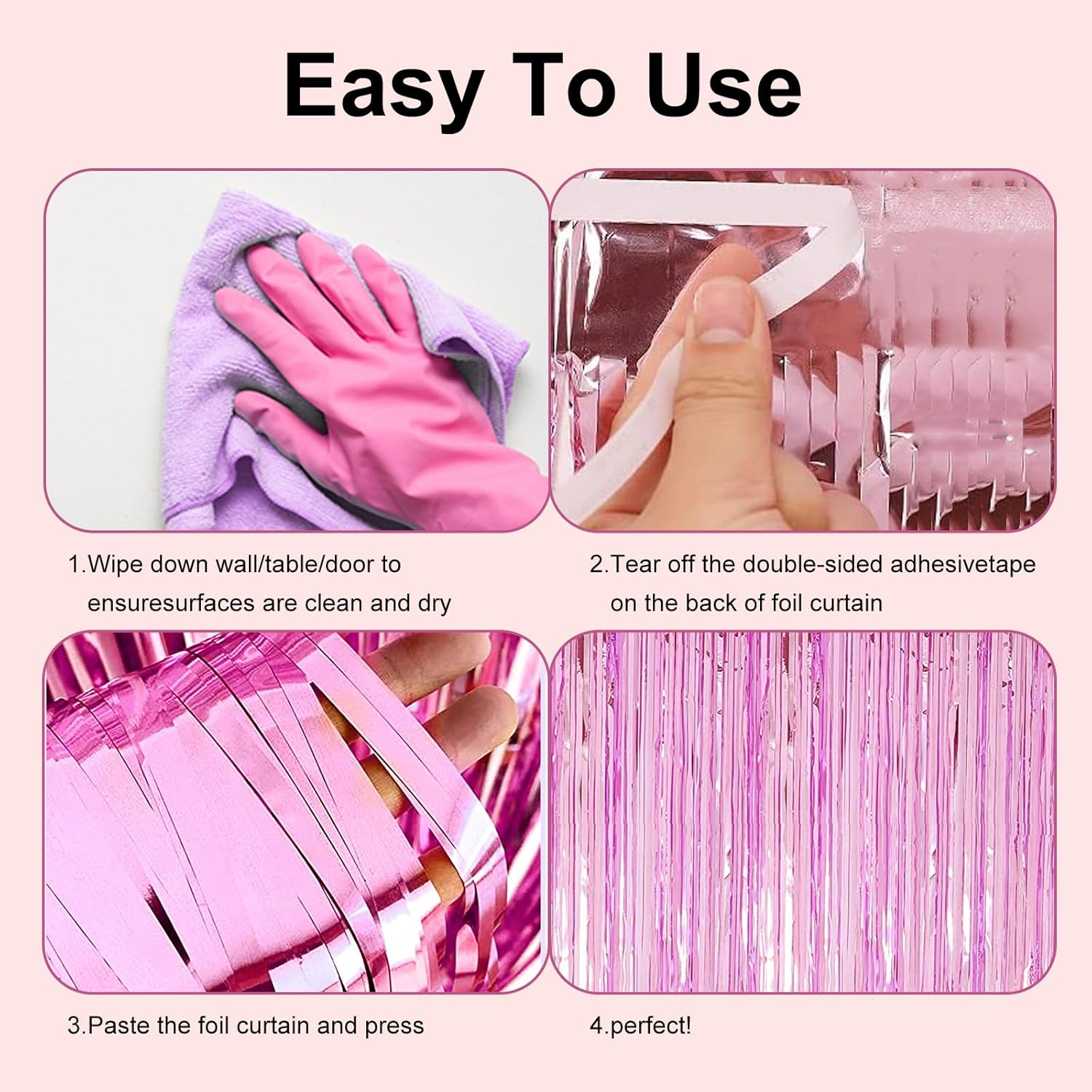 2 Pack 3.28 ft x 6.56 ft Pink Tinsel Curtain Party Backdrop Decorations, Metallic Foil Fringe Backdrop Door for Halloween, Christmas, Birthday Graduation Wedding Party Streamers Photo Backdrop.