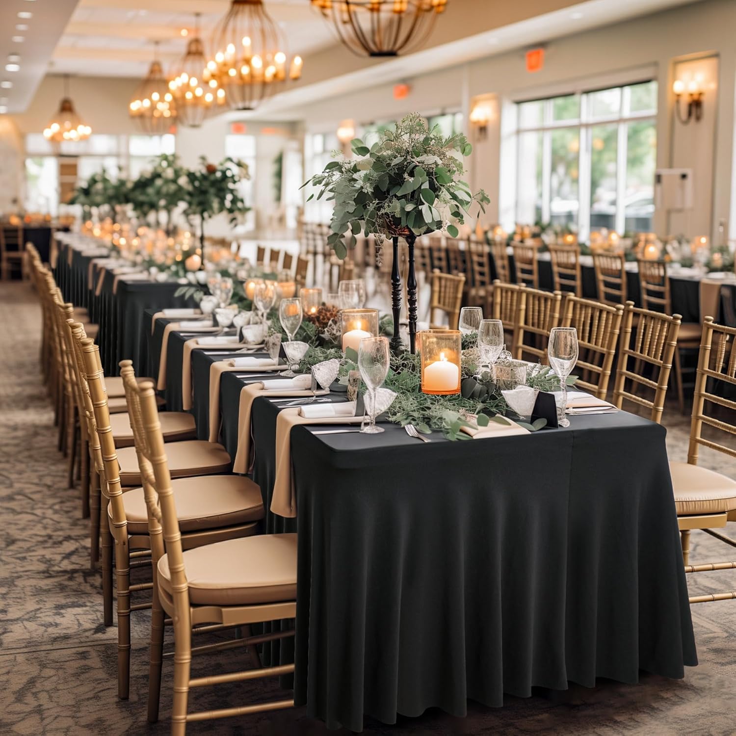 Wish Care 2 Pack Black Spandex Table Cloths for Rectangle Tables 8ft - One-Piece Wrinkle Free Fitted Table Cover 8 Foot Stretch Tablecloths for Party, Banquet, Wedding and Events