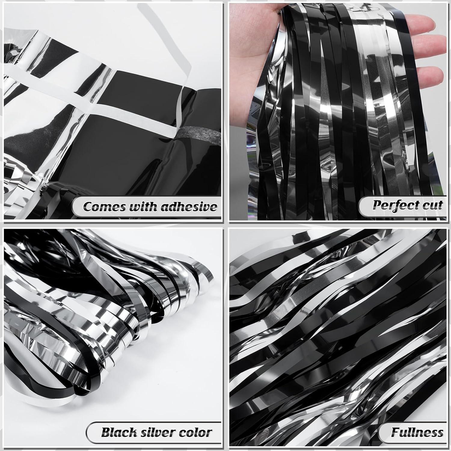 - Durable Quality: Crafted from high-quality plastic metallic foil, our prom metallic curtain decoration is designed to last. With its strong self-adhesive, it is easy to apply and will stay securely in place throughout your celebration, lighting up your party and leaving a lasting impression on your guests.