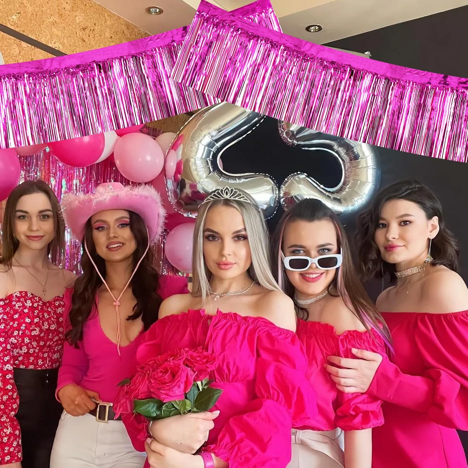 BEISHIDA 3 Packs Metallic Foil Fringe Garland Rose Red Wall Hanging Tinsel Fringe Banners for Car Floats Bridal Shower Wedding Birthday Easter Graduation Holiday Party Decoration(30 Feet)