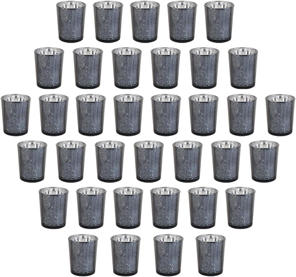 Black Mercury Glass Tea Light Holders Set of 36 - Elegant Votive Candle Holders for Weddings, Showers and Home Decor - Perfect for Table Centerpieces and Parties (Glass, Black)