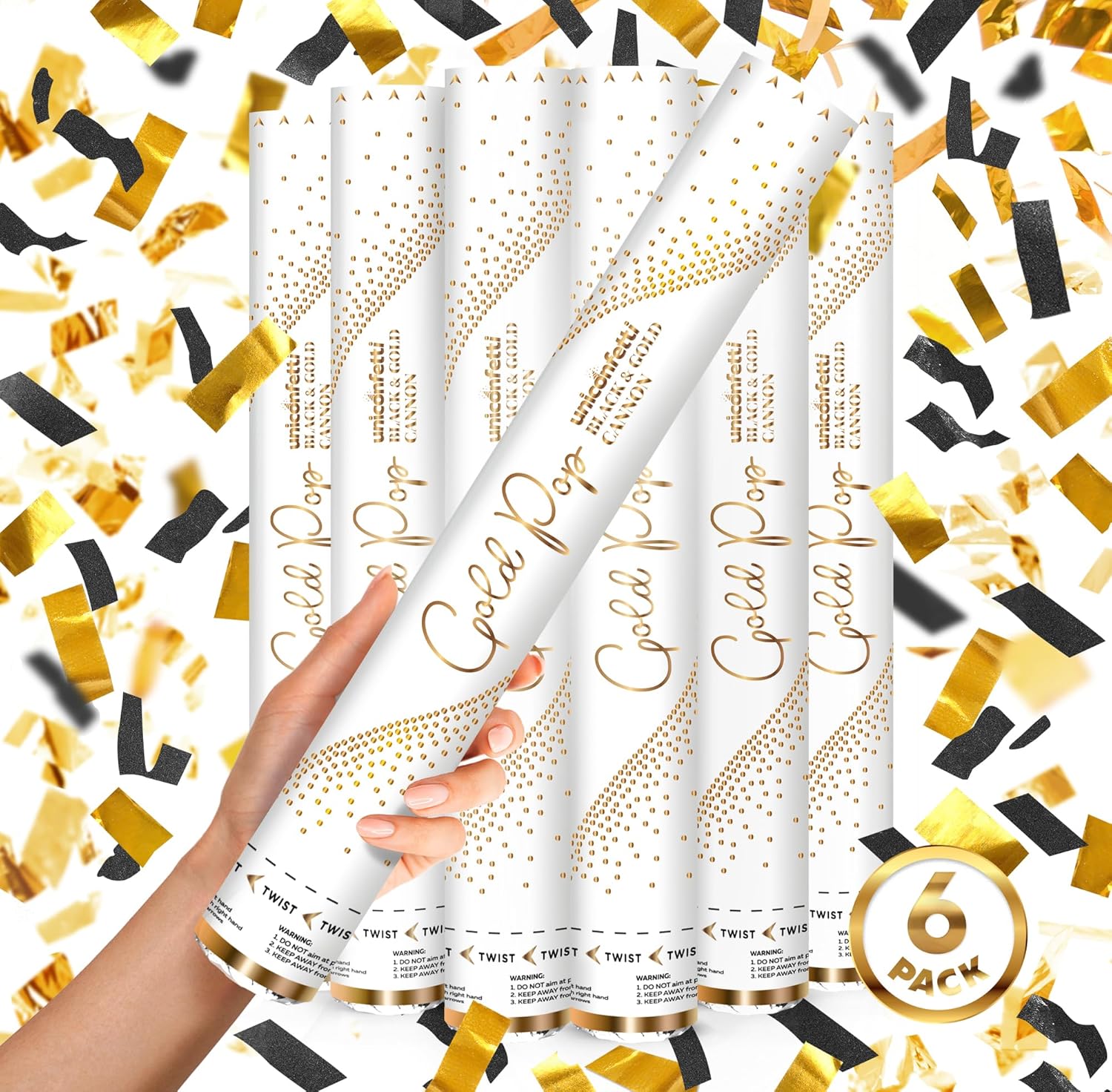 - š 6-PACK OF EXCITEMENT - Each box contains 6 BIG BOY CANNONS (16"), for Black & Gold Wedding, Wedding Send Off, Bachelorette, New Years Eve, Parties, Birthday, Graduation!