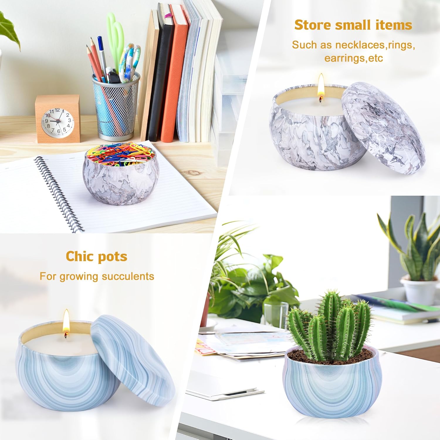 - đăBeautiful JarăThis aromatherapy candle is packed in a beautiful round jar with beautiful marble element patterns on it, fully demonstrating your high taste! When you run out of soy wax, the empty jars can also be used to store earrings, rings, necklaces and other small items, or even become delicate containers for growing small plants.